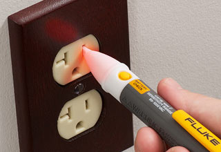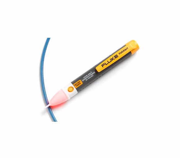 检测交流电压通过绝缘材料的稳态静电场,不必接触裸露的导体。探针点亮红灯,表示存在电压。 |
