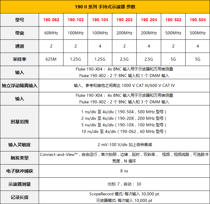 型号fluke 190-062|fluke 190-102|fluke 190-202|fluke 190-502|fluke 190-504