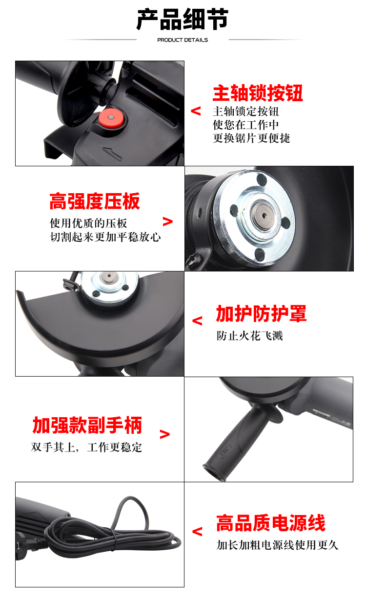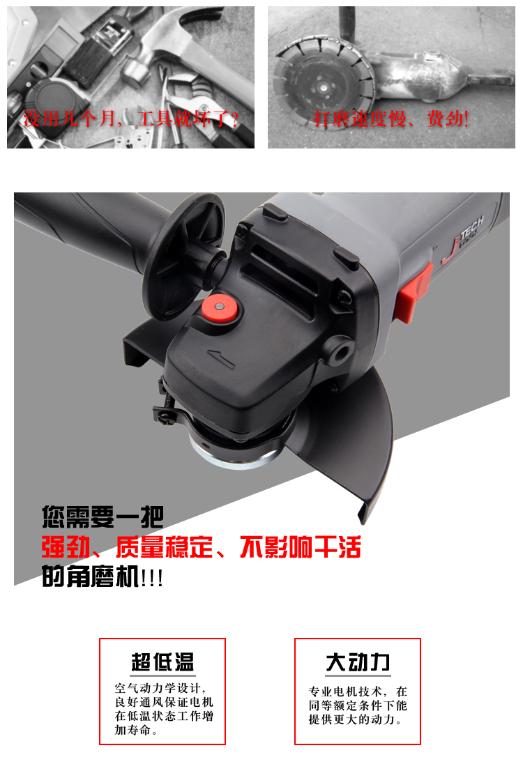 捷科电动工具1150W瓦侧开关角磨机砂轮直径125mmJPT-GL125-S11