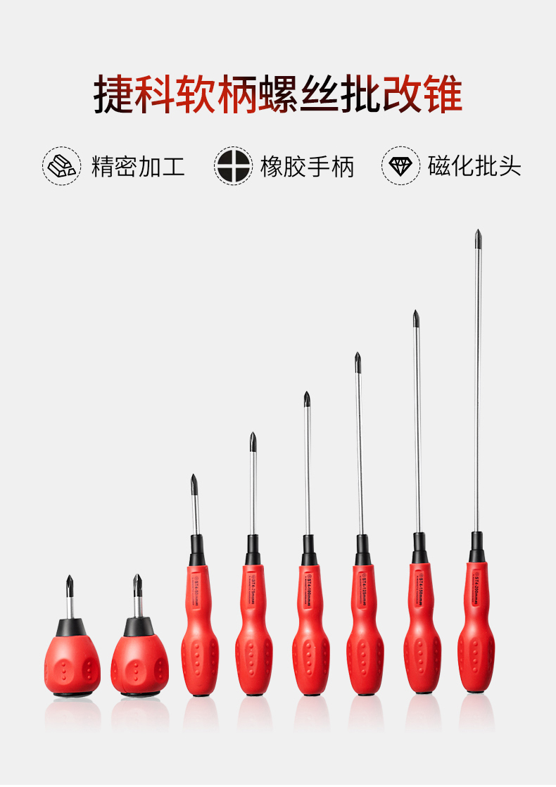 Jetech捷科软柄螺丝批改锥起子批头十字带磁性螺丝刀ST系列