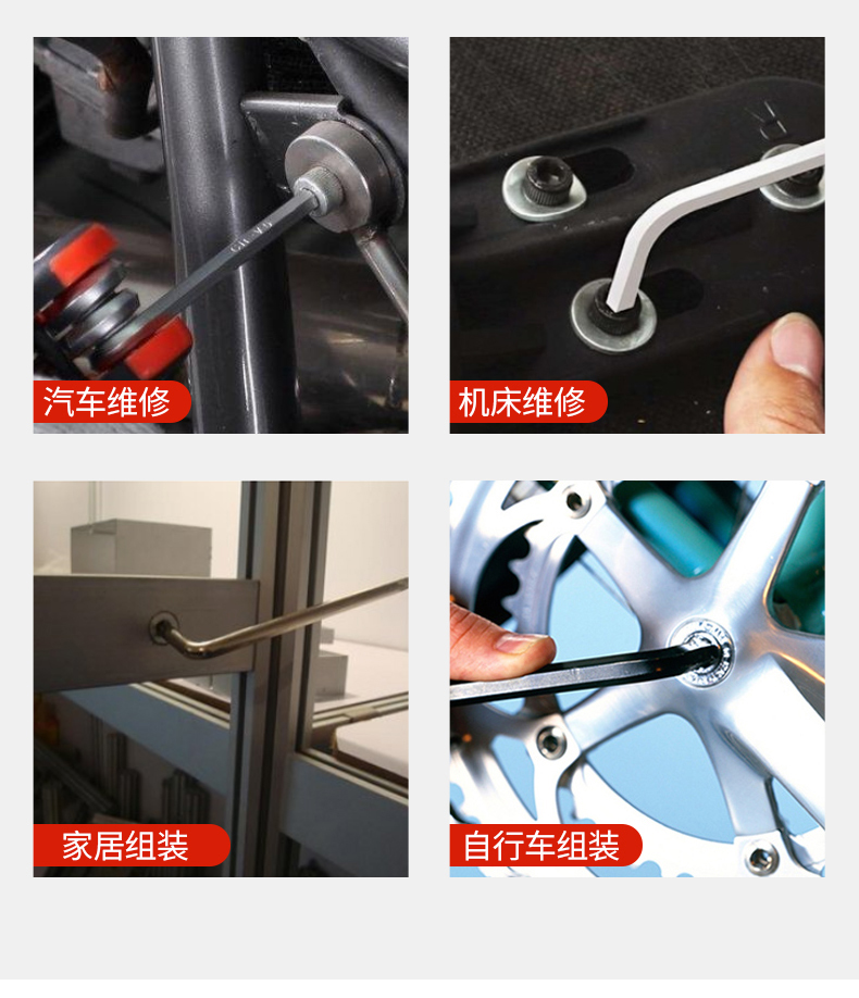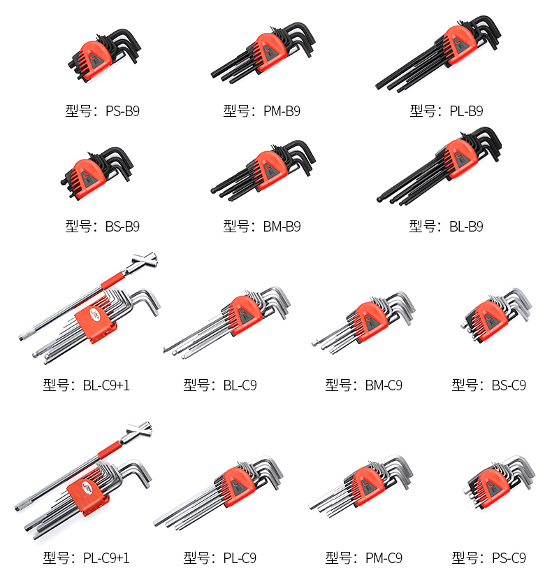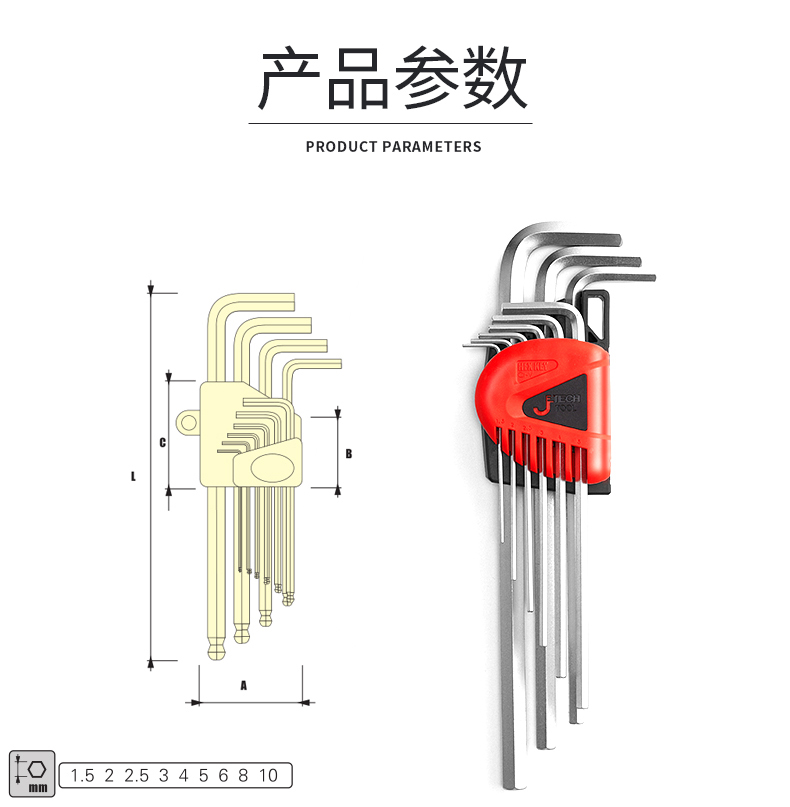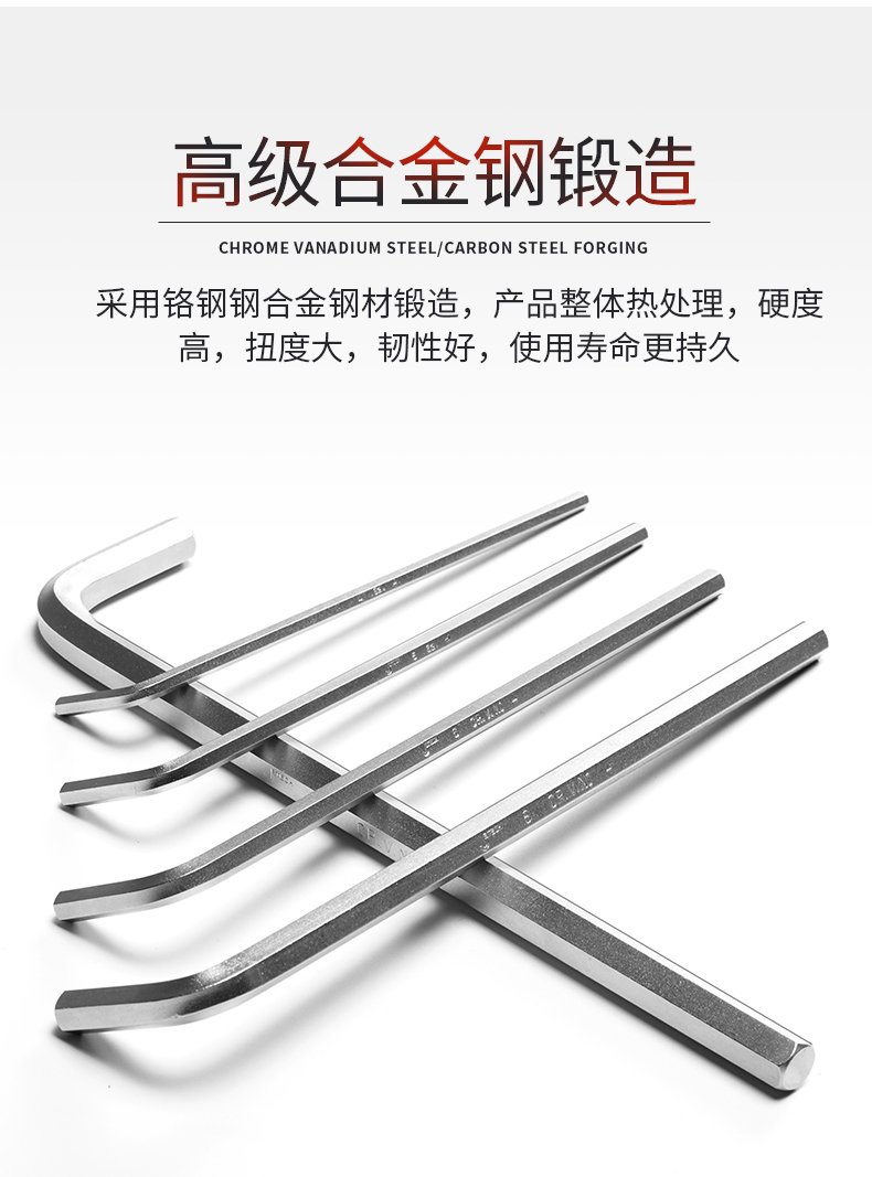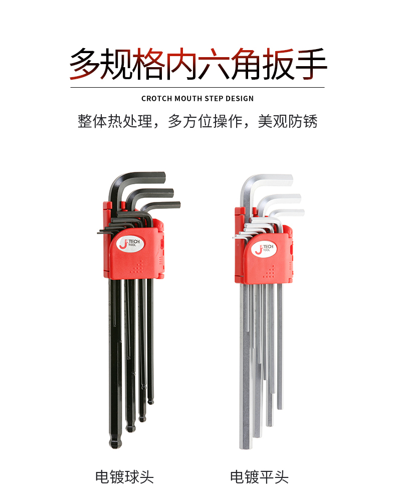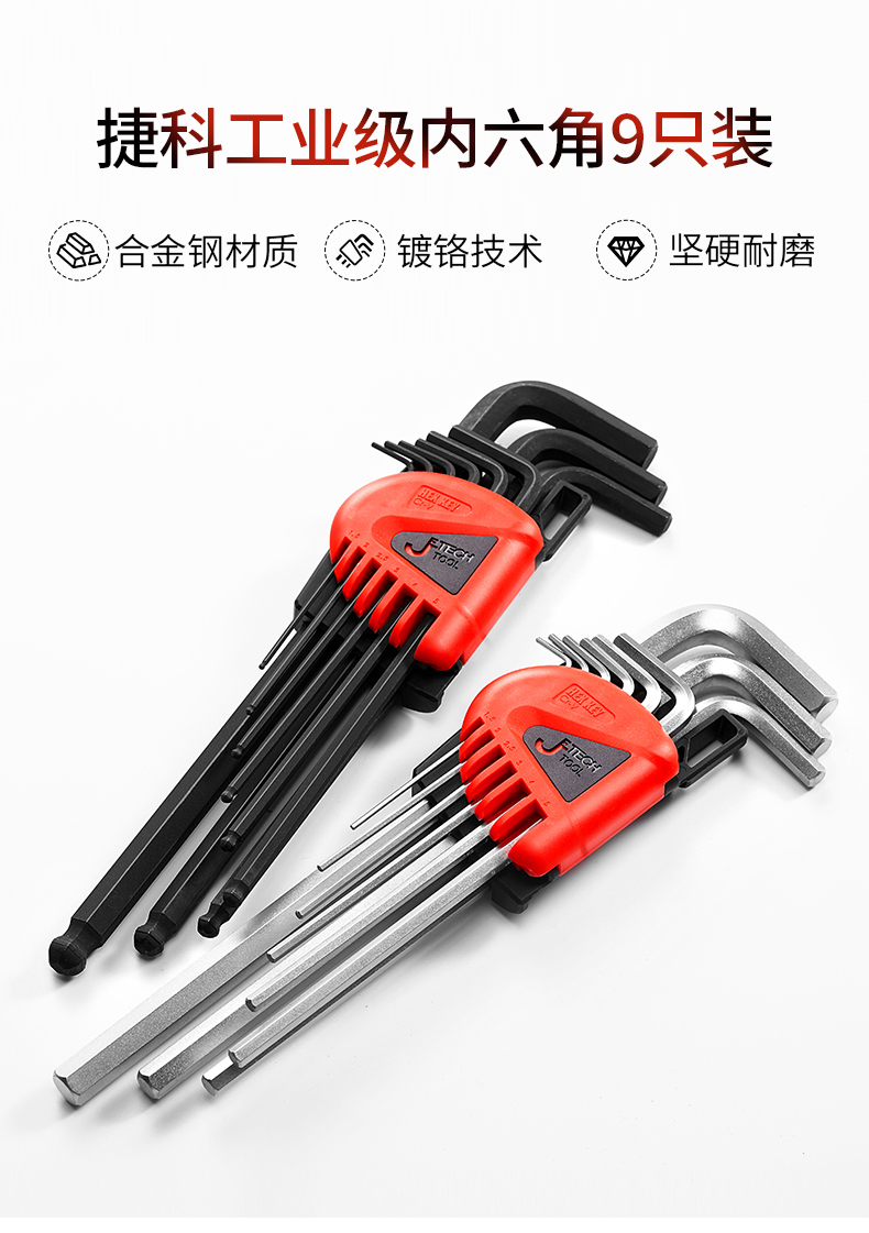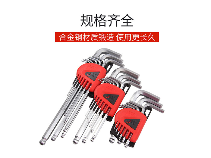 捷科工具内六角球头镀铬银色六角扳手9件套家用汽修五金PMBM