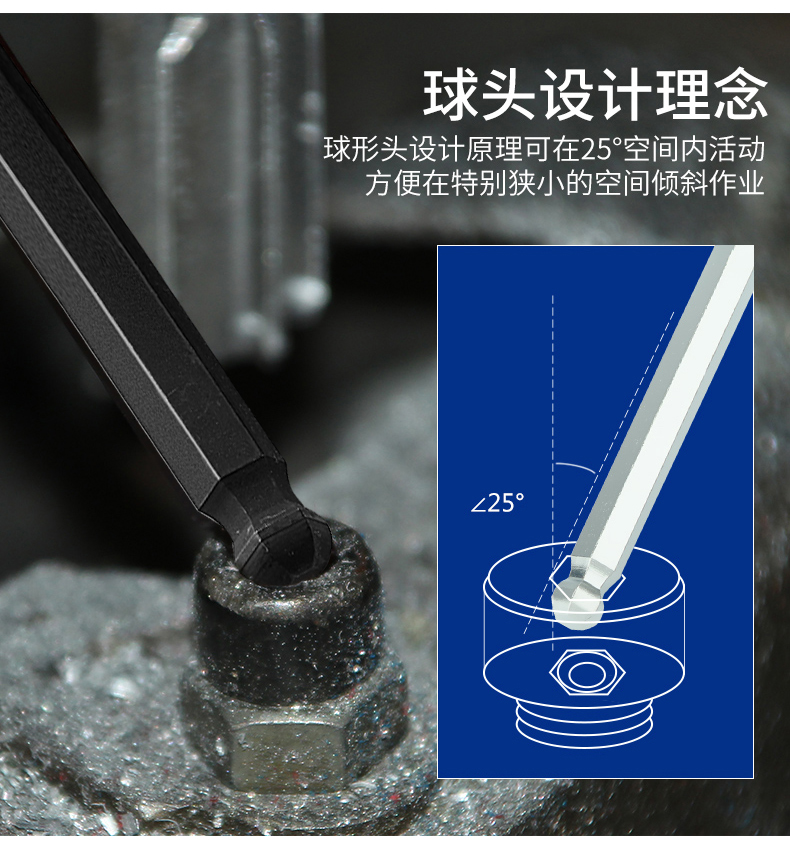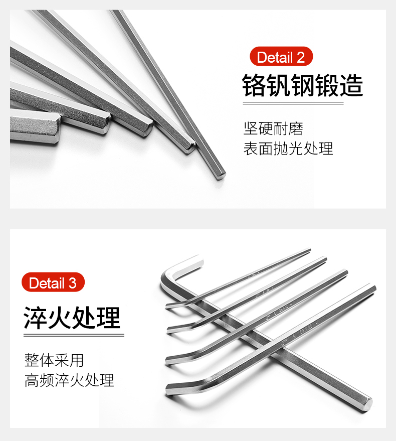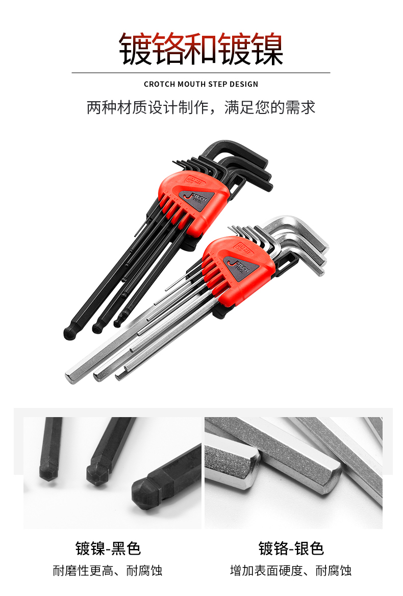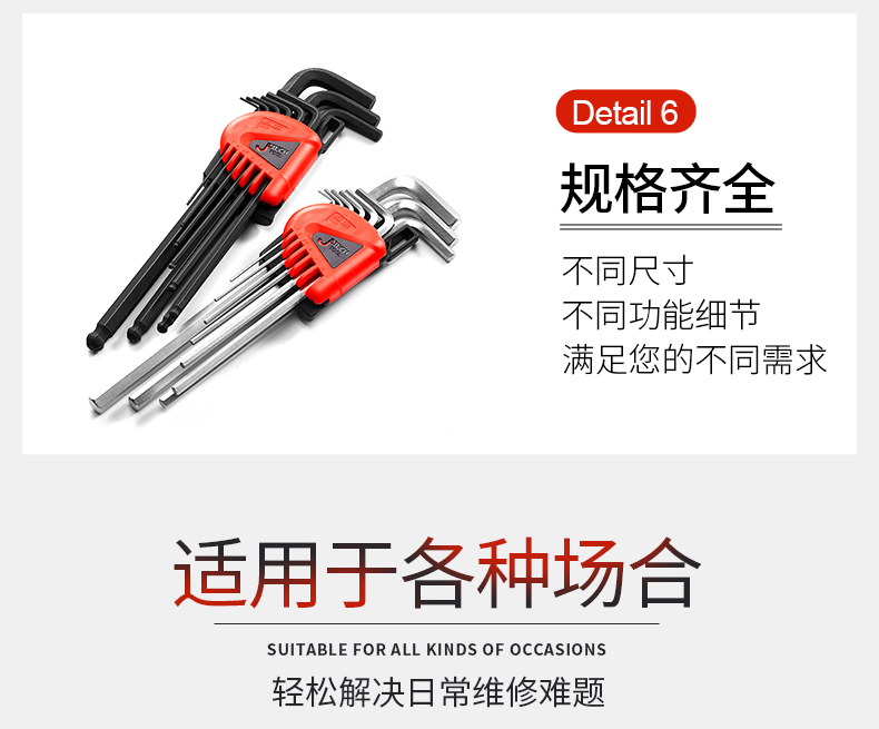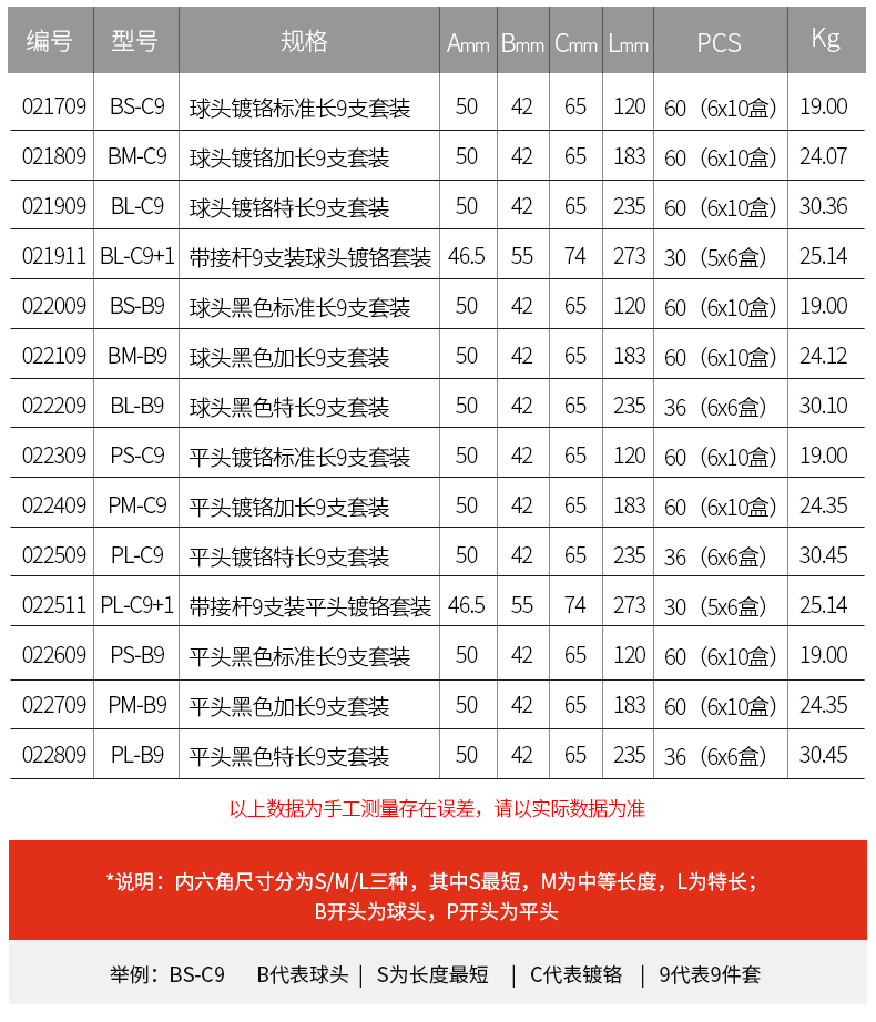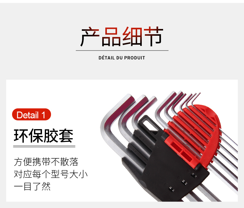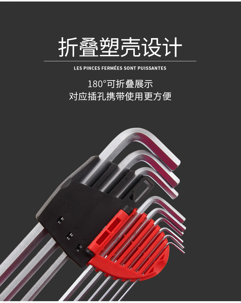 捷科工具内六角球头镀铬银色六角扳手9件套家用汽修五金PMBM
