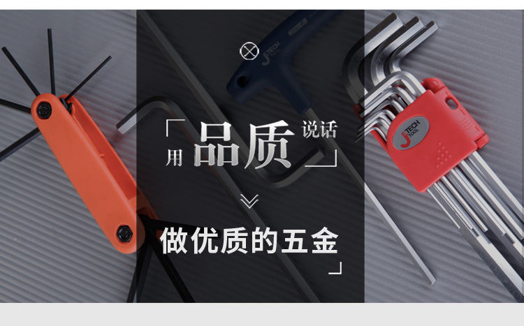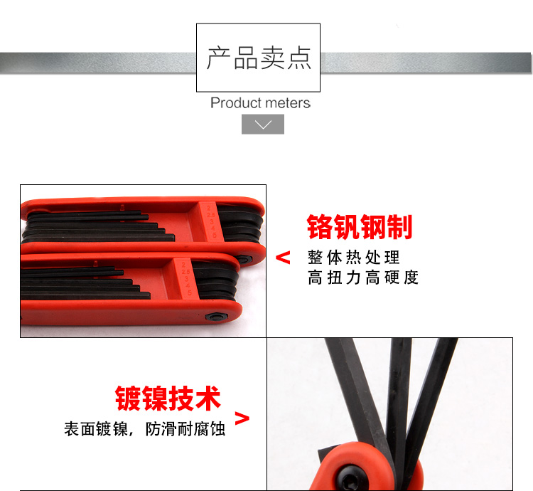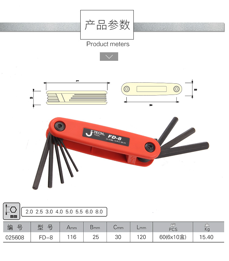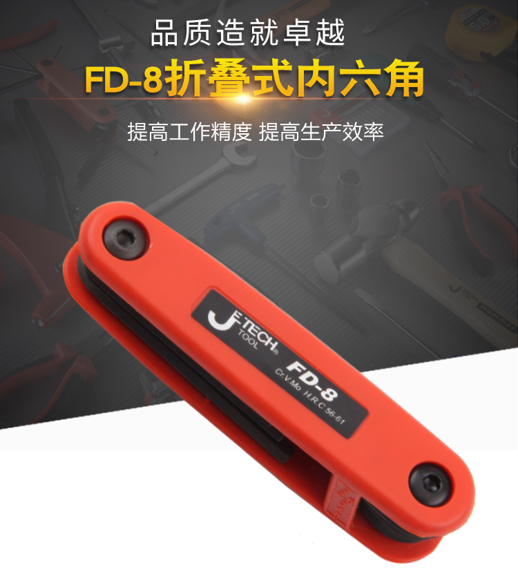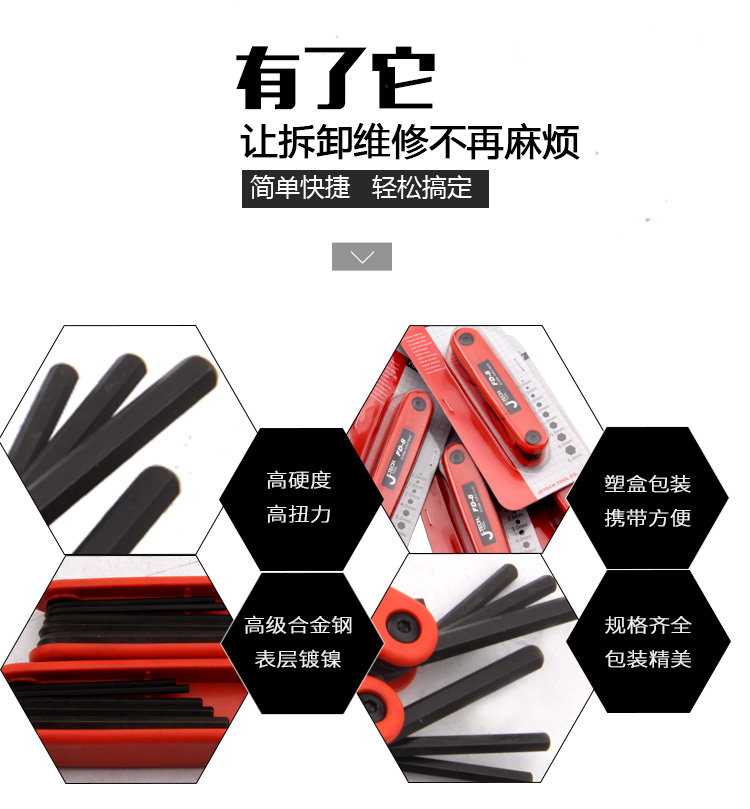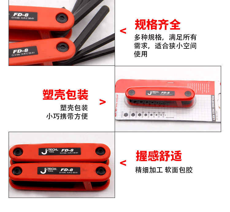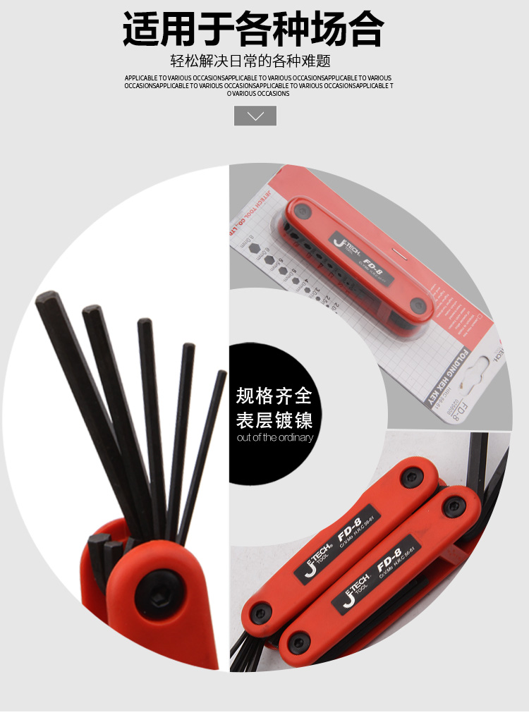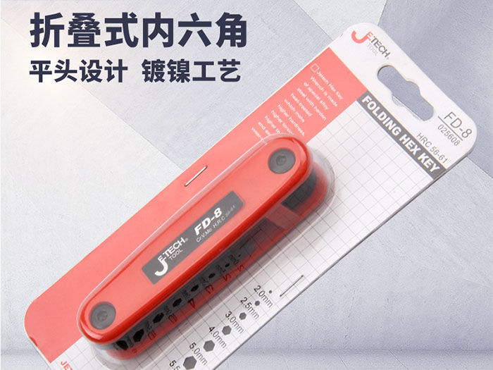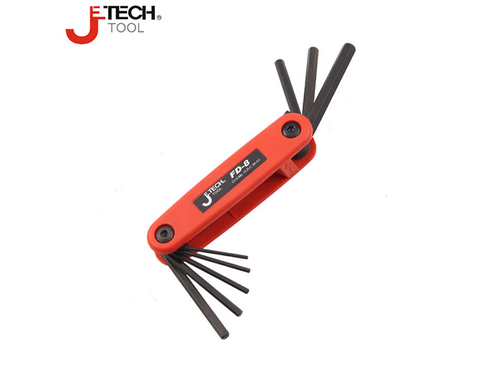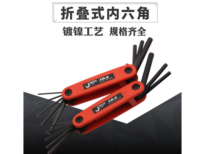 捷科内六角平头镀镍铬钒钢8件套折叠式六角扳手便携扳子FD-8