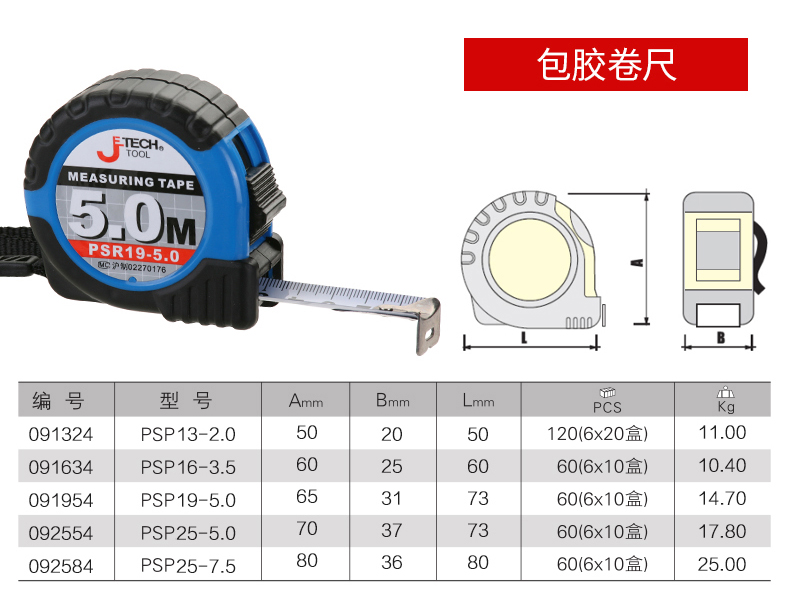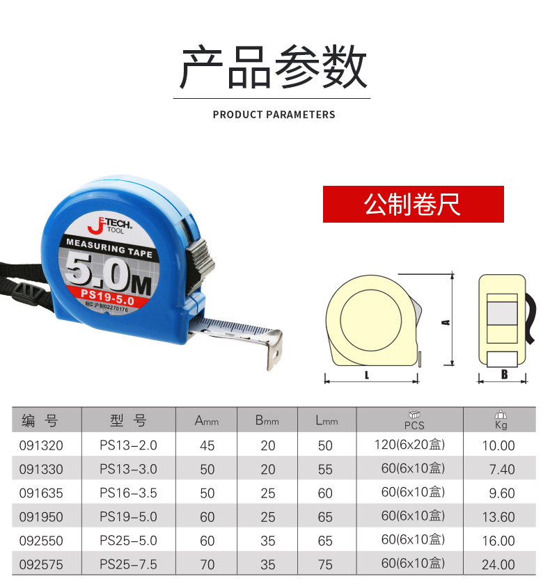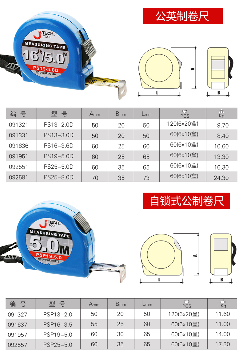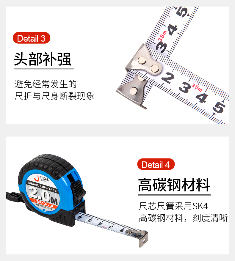 捷科工具钢卷尺公制自锁式英制高精度2米3米5米7.5米测量尺子米尺