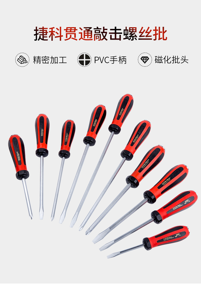 捷科工具敲击螺丝刀十字一字超硬工业级起子改锥螺丝批带磁性GTH