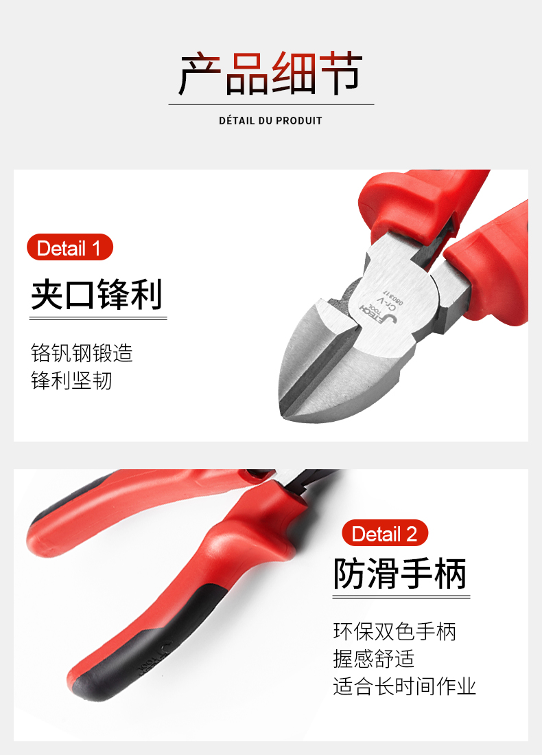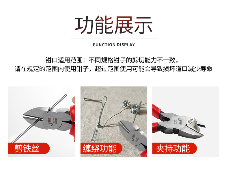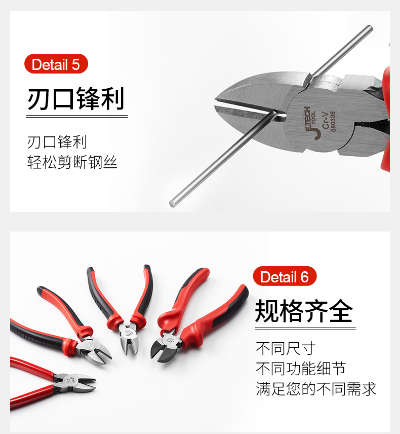 捷科钳子高碳钢斜嘴钳尖嘴钳扁嘴钳剪切钳电线切割家用汽修工具