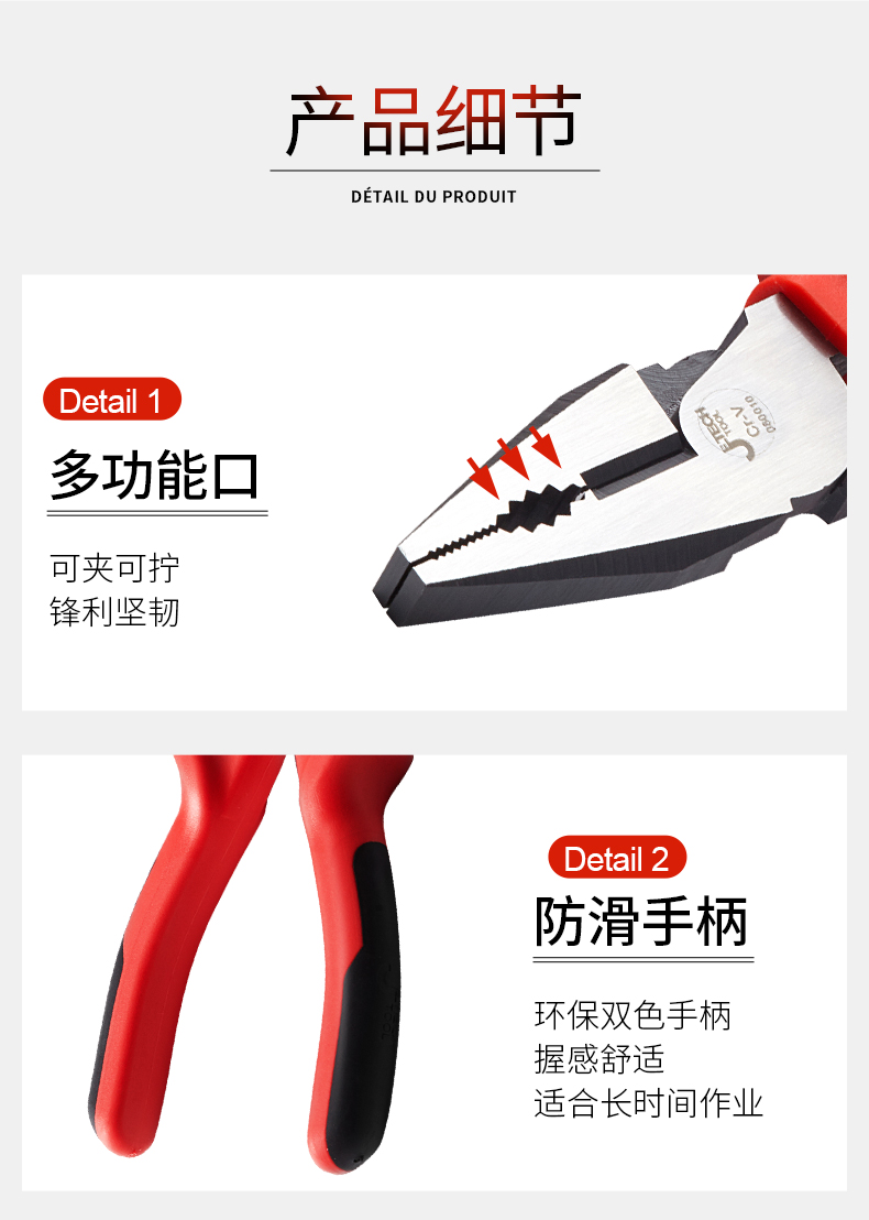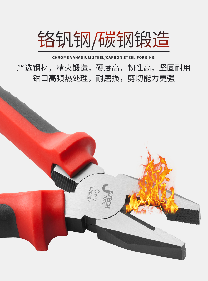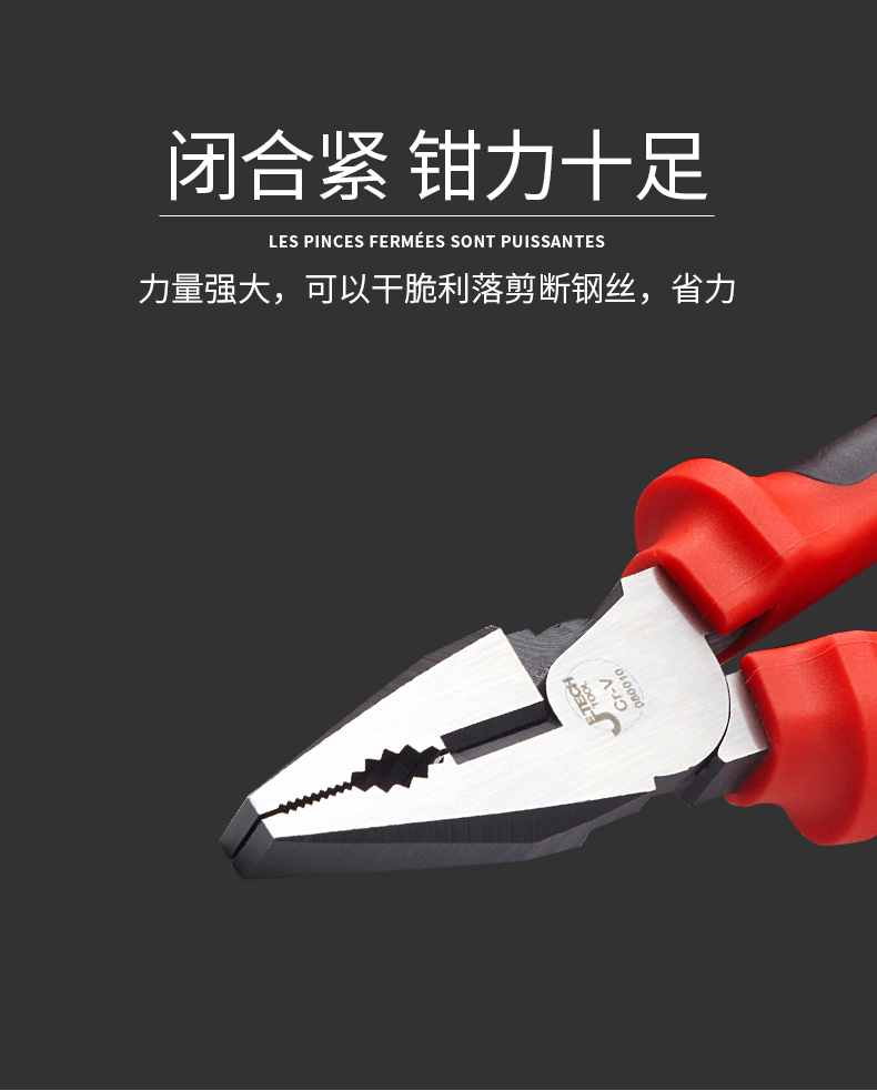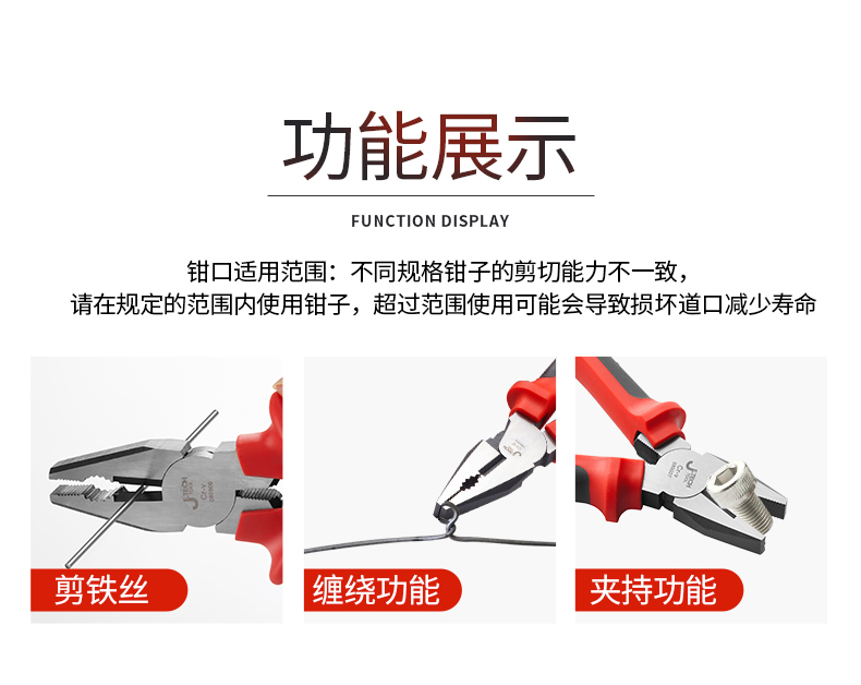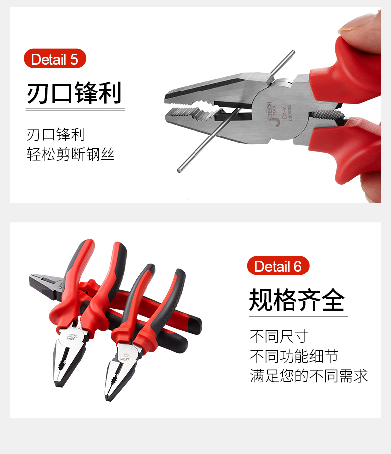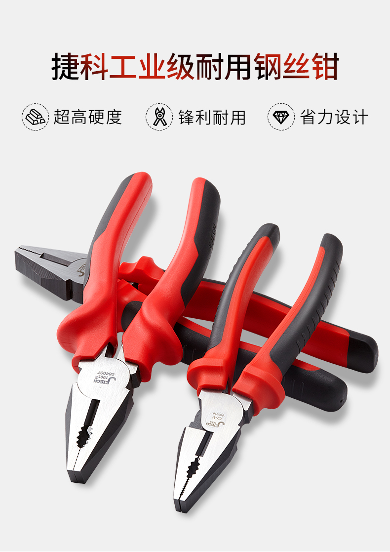 捷科工具老虎钳钢丝钳8寸 工业级钢丝剪7电工家用多功能6省力钳子