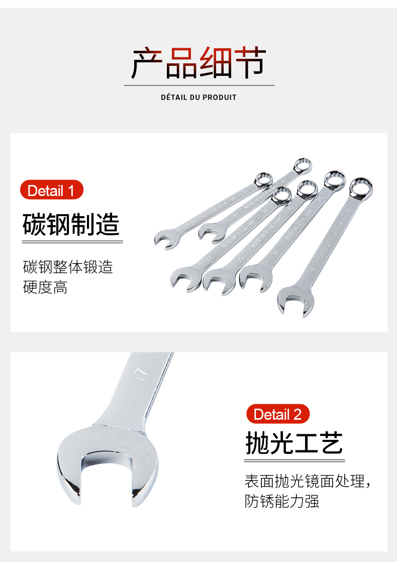 捷科工具镜抛两用扳手梅花开口板子呆板子工扳手COMF6-29
