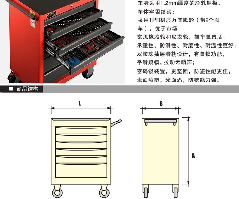 捷科工具车带抽屉多用途多功能万向轮子汽修汽保工具柜6层7层9层