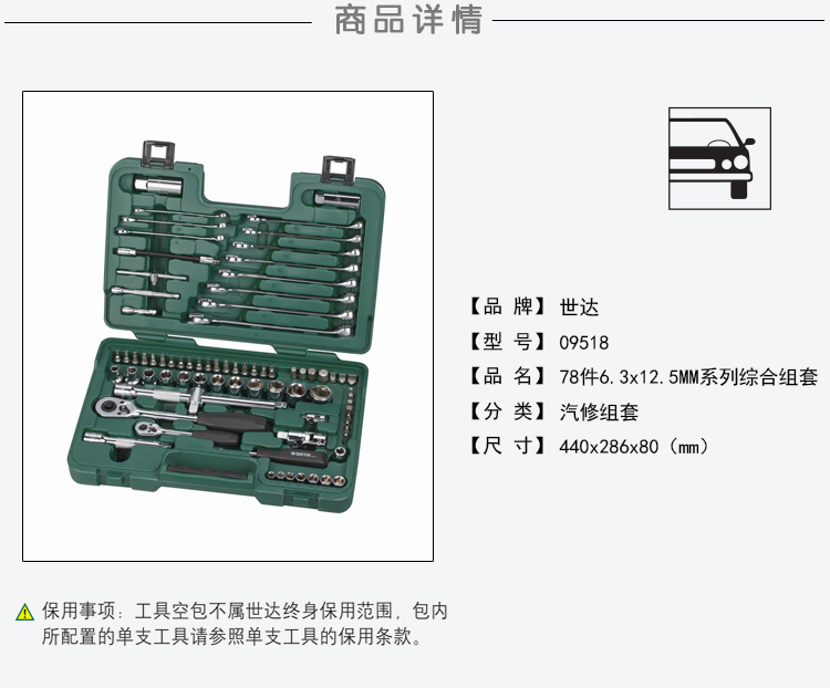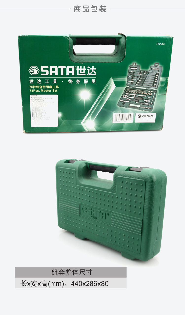 世达汽修汽保工具组合套装78件12.5MM套筒棘轮扳手汽车维修工具箱09518