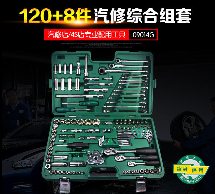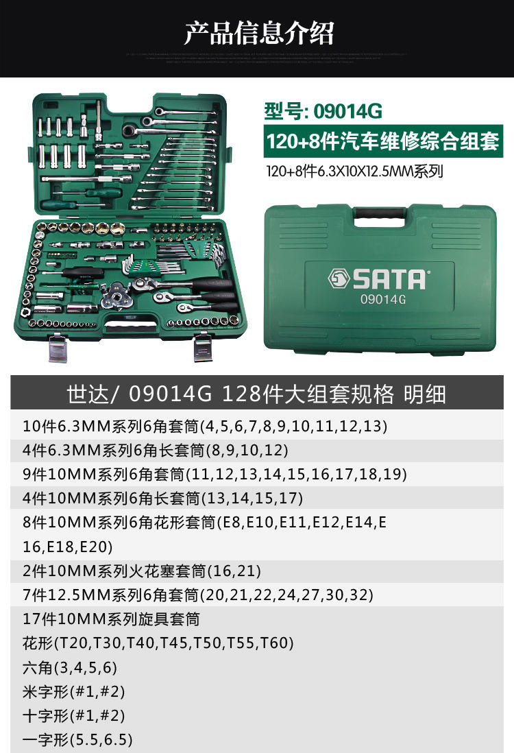SATA世达工具128件汽车维修综合组套09014G 修工具组合套装汽保