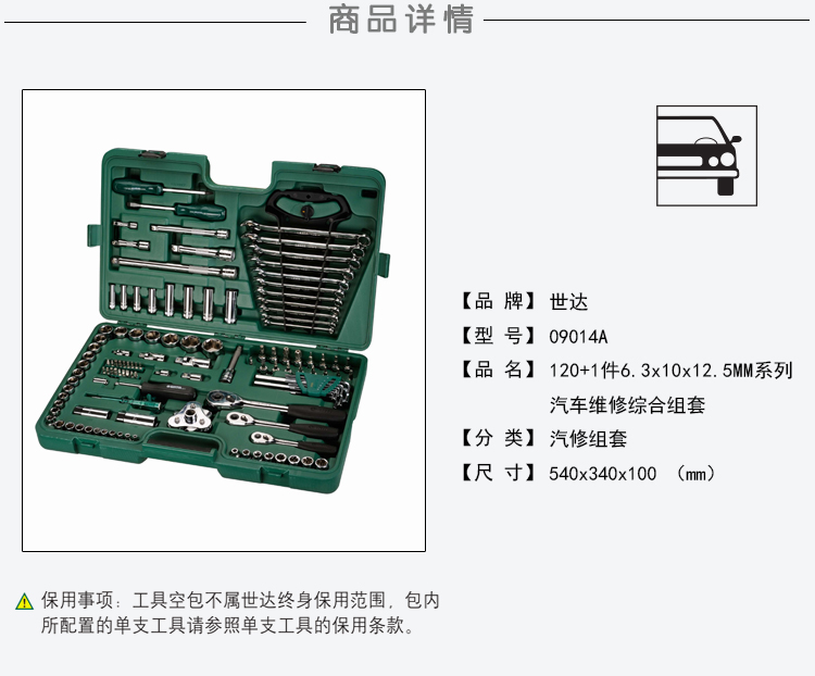 世达 121件汽车维修综合工具箱棘轮扳手套筒汽修工具套装6.3x10x12.5MM系列09014A