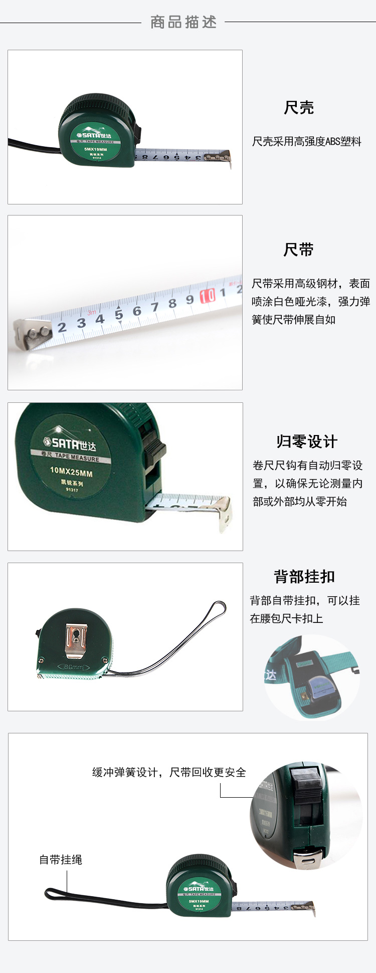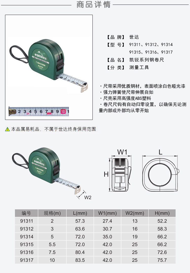 世达五金工具迷你卷尺凯锐系列钢卷尺米尺2米3米5米7.5米10米91311-17 91314/5M*19MM
