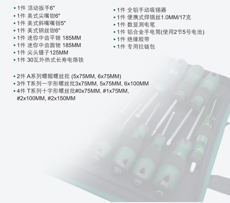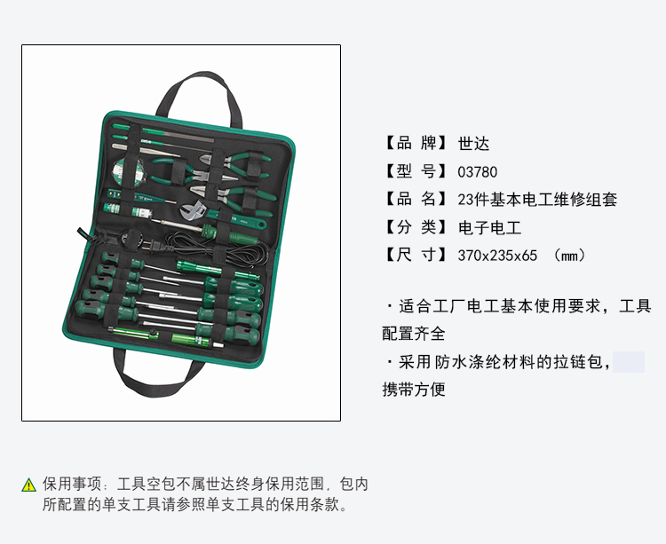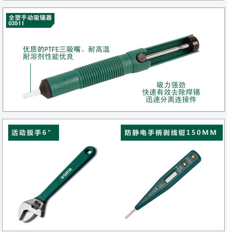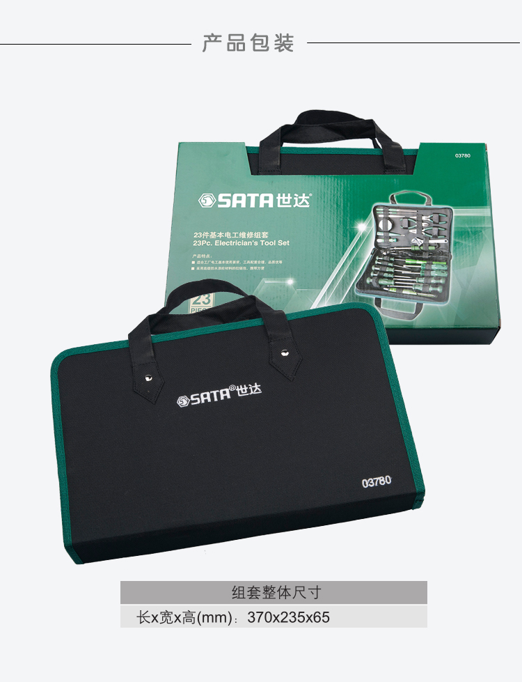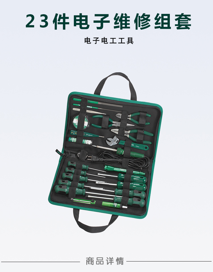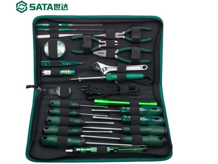 世达SATA 23件基本电子电工维修工具包套装电烙铁测电笔 03780