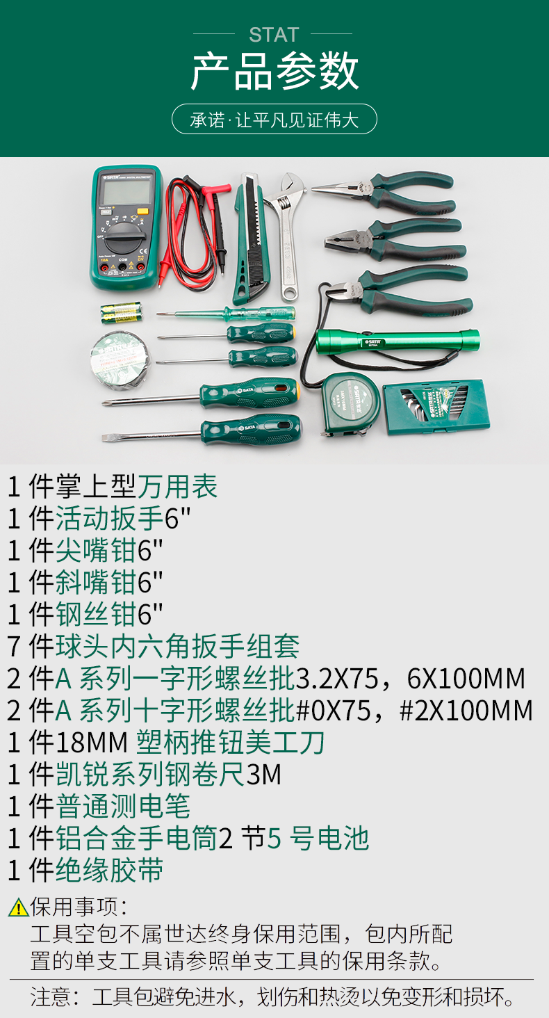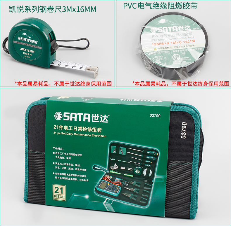 世达工具套装21件电工日常检修组套家用维修工具套装万用表03790