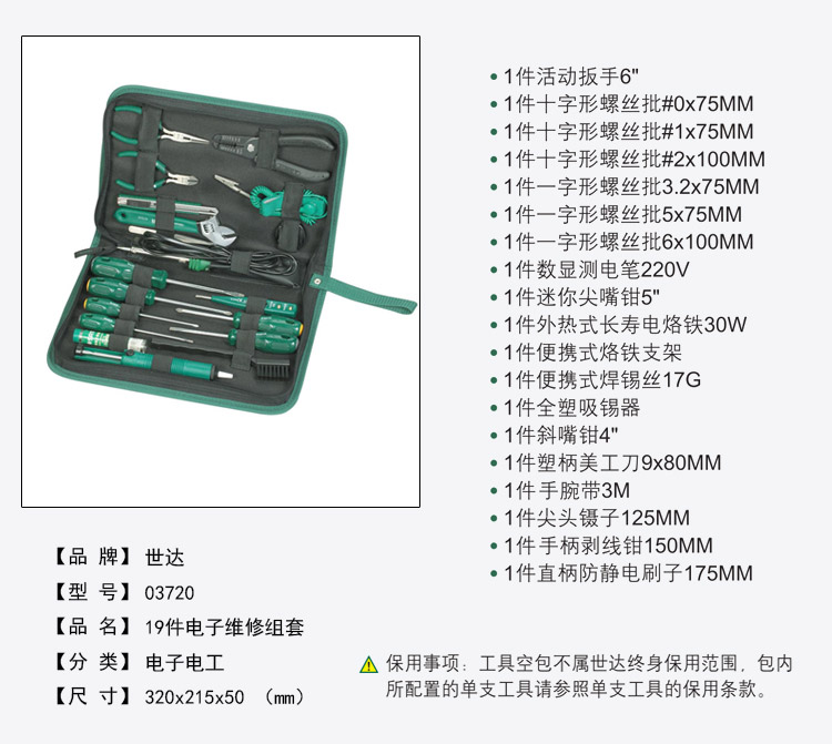 世达工具19件家用维修工具包电烙铁组合套装03720
