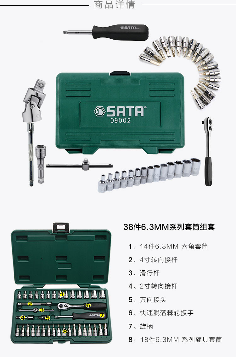 世达(SATA) 世达38件6.3MM系列套筒套装汽修工具套装09002
