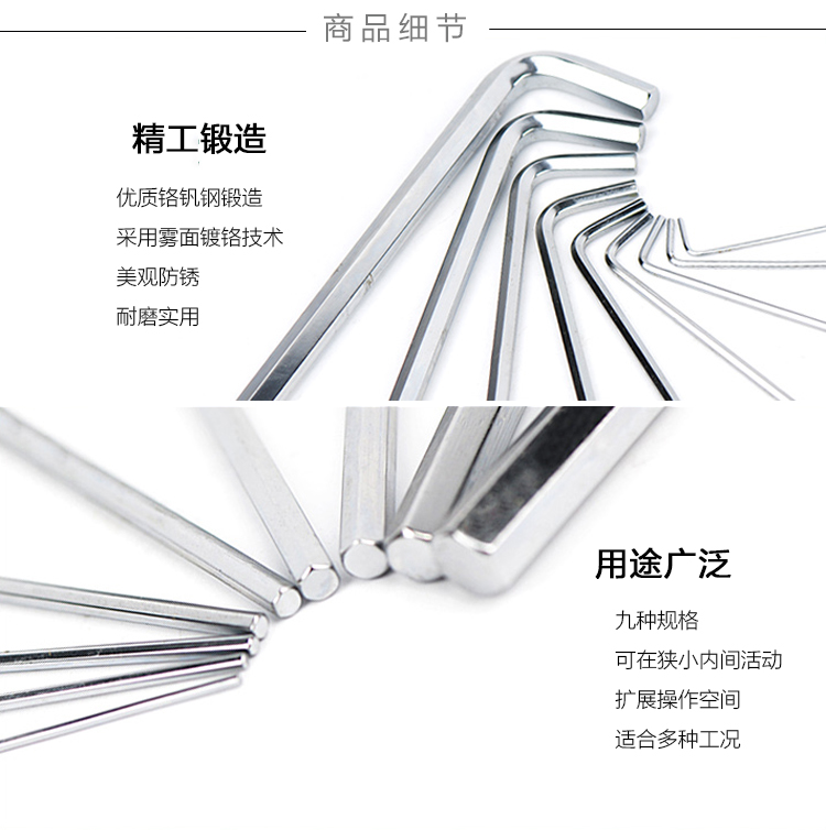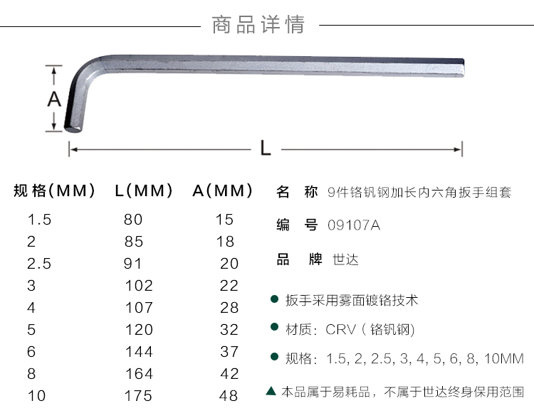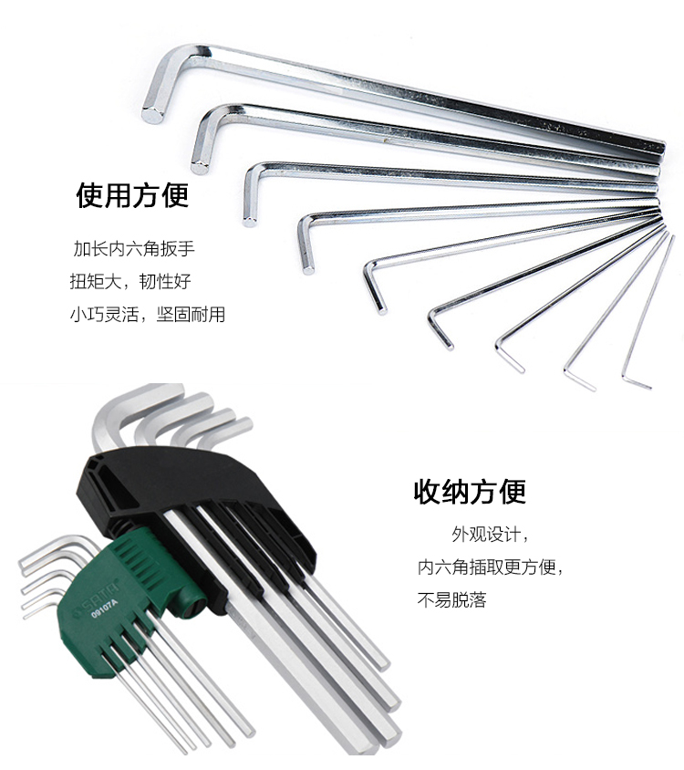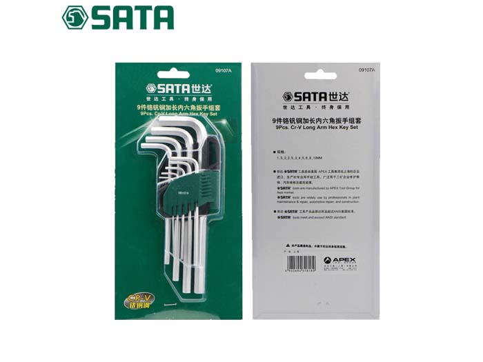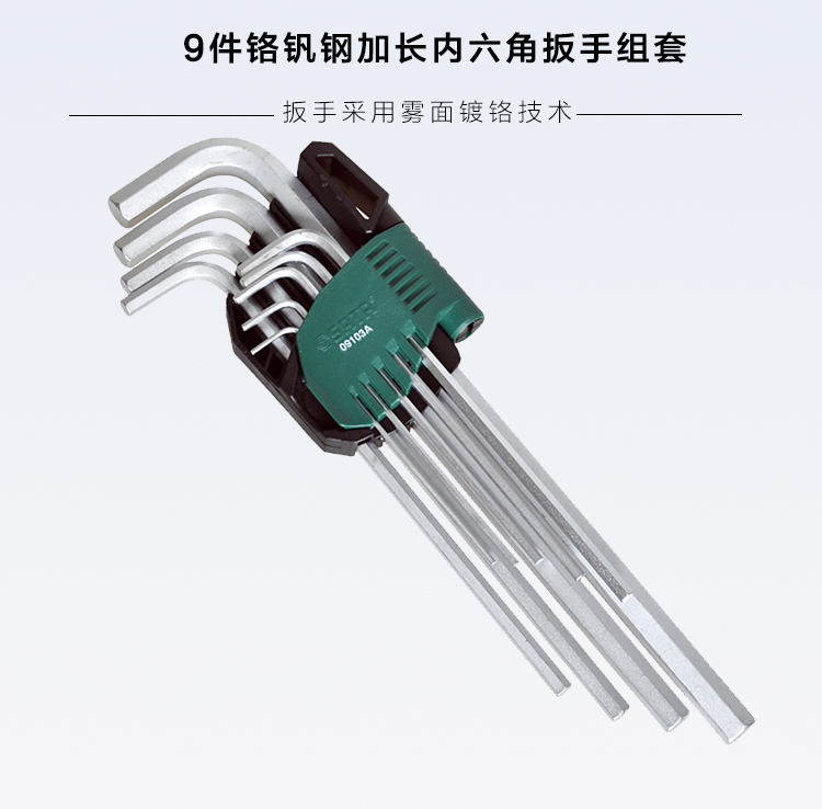 世达9件套铬钒钢加长内六角扳手组套 六棱扳手09107A