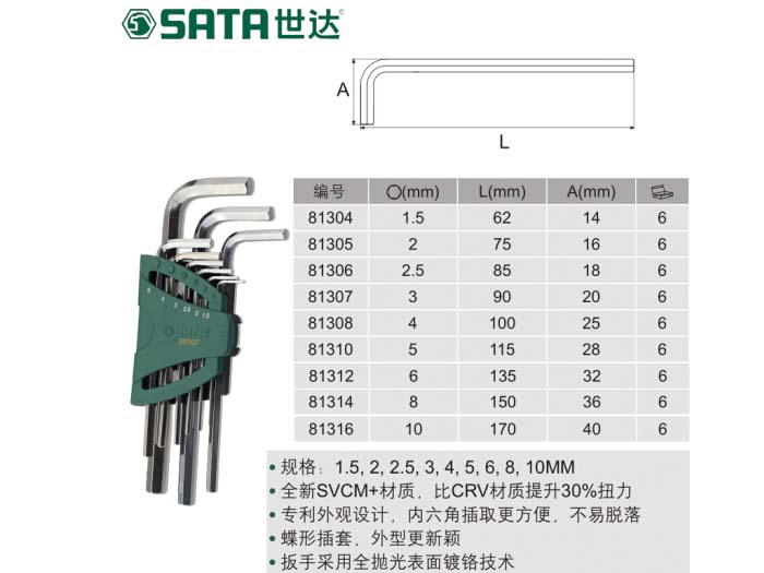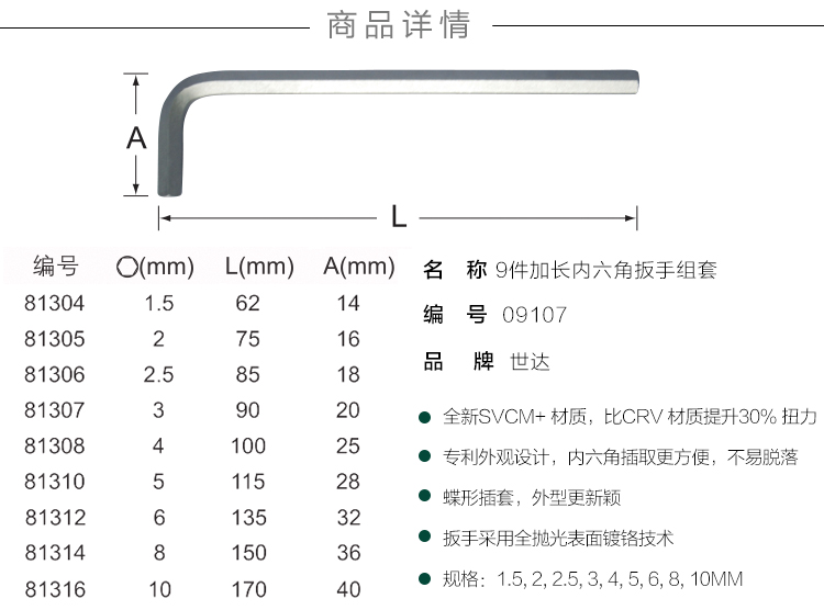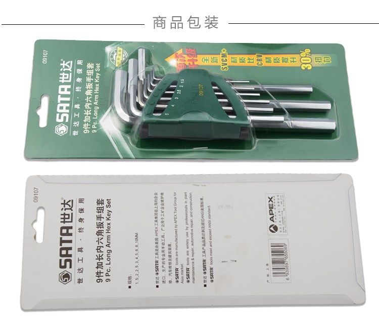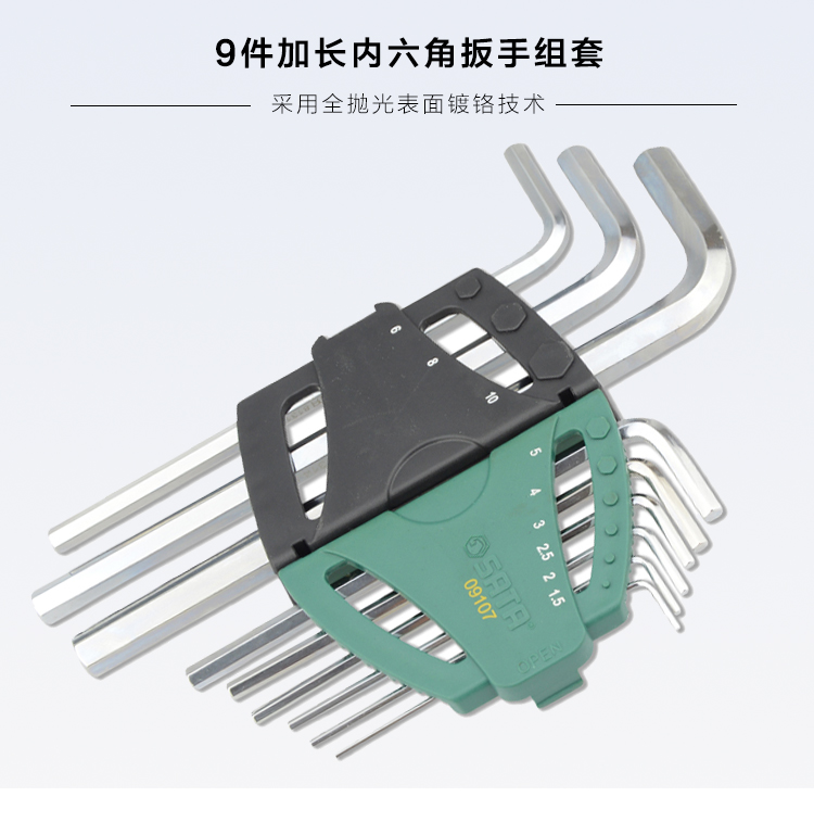 世达(SATA)9件加长内六角扳手套装 09107