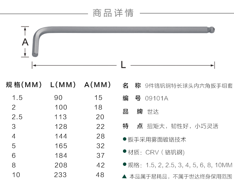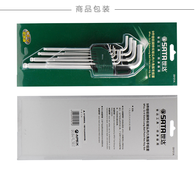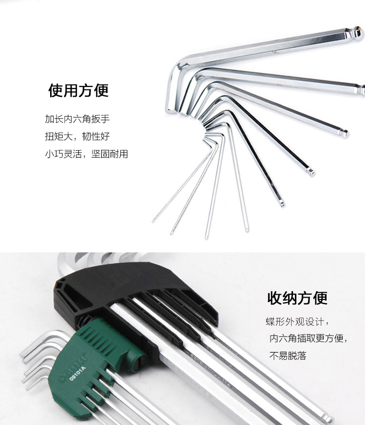 世达扳手工具球头L型内六角扳手9件套装六棱螺丝刀扳手六方09101A