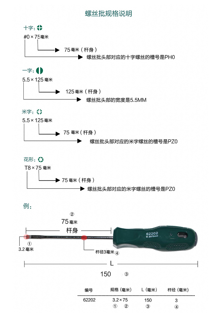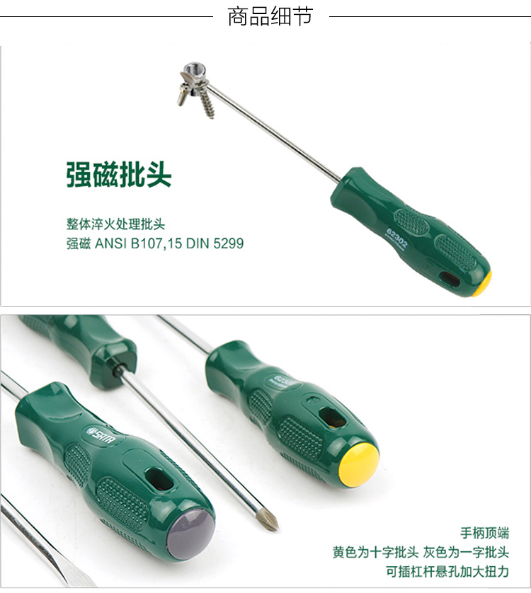 世达维修工具十字大号长螺丝刀小号螺丝批A系改锥强磁 62302 62313(6x150mm)