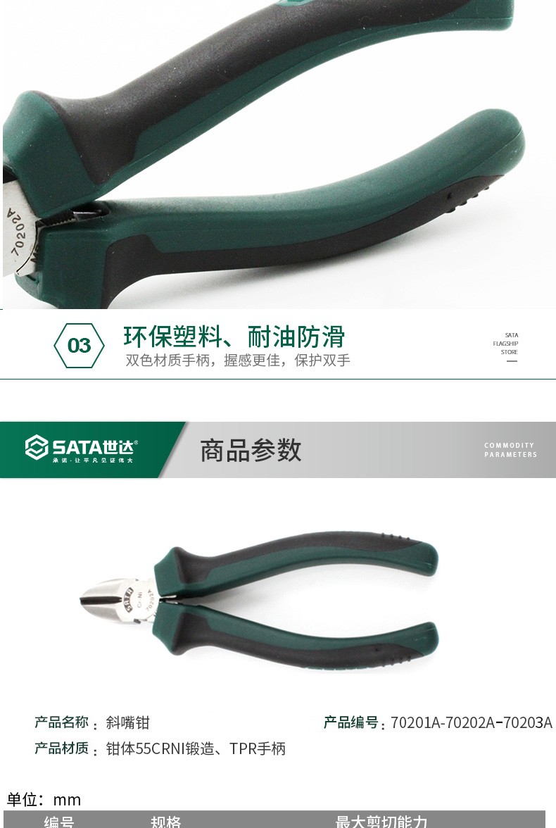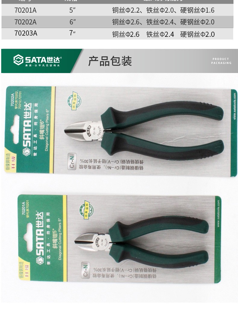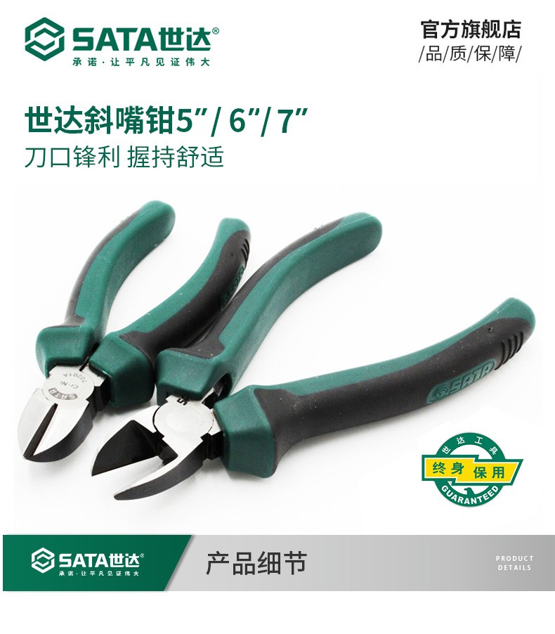 世达工具斜口钳5寸斜嘴钳6寸偏口钳偏嘴钳子压线钳斜口剪钳70201A 70202A 6寸