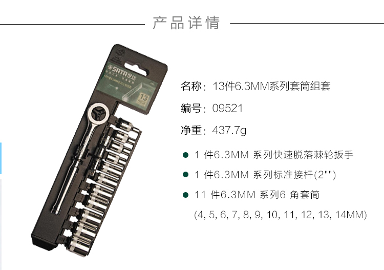 世达SATA 13件6.3MM系列套筒套装 09521