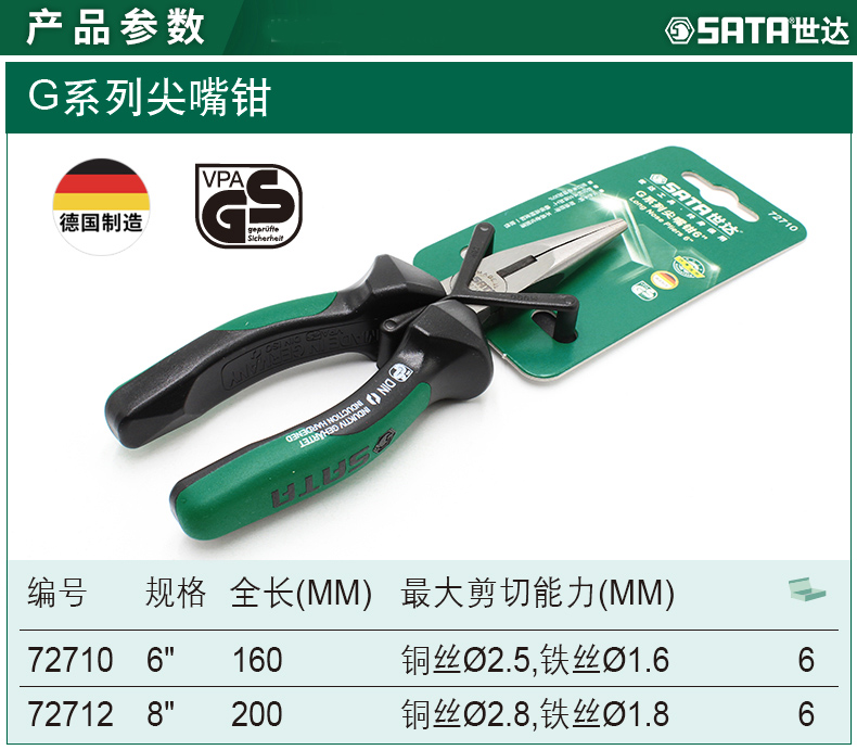 世达工具尖嘴钳系列德国多功能电工钳子尖口尖头加长6寸8寸72710
