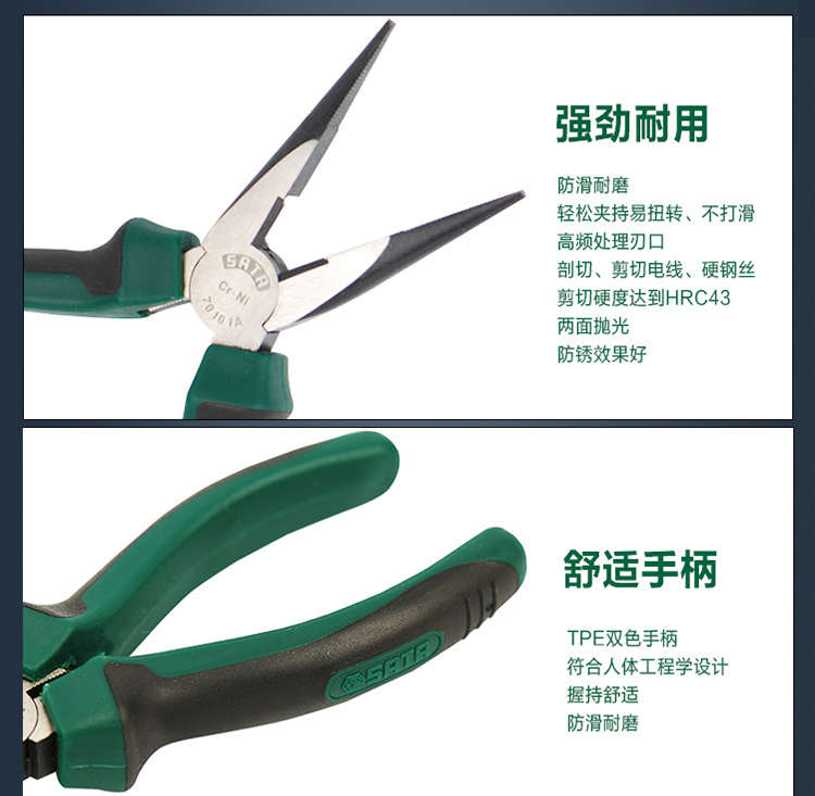 世达70101A 尖嘴钳6寸8寸五金工具多功能电工钳子尖头钳尖口钳