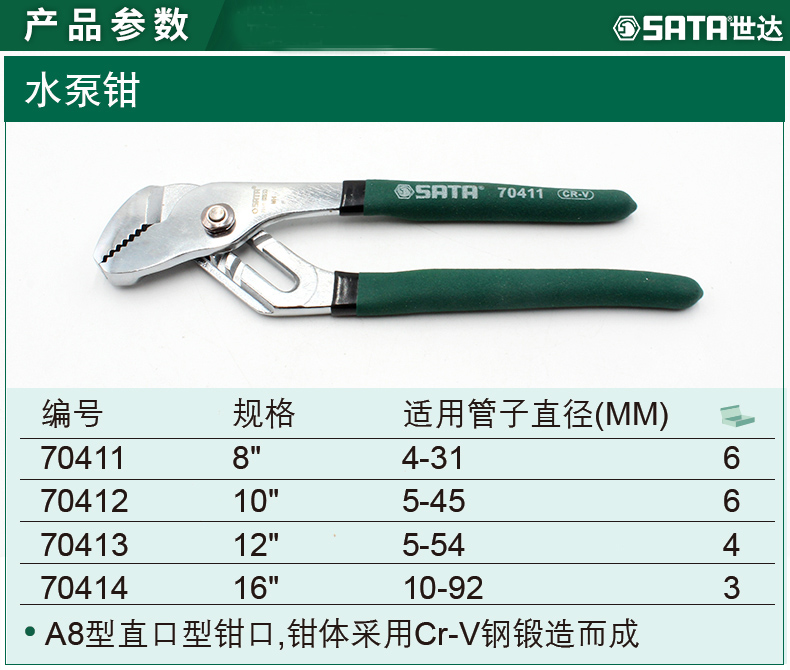 世达五金维修工具多功能弯嘴水泵钳12寸钳子8寸16寸70411