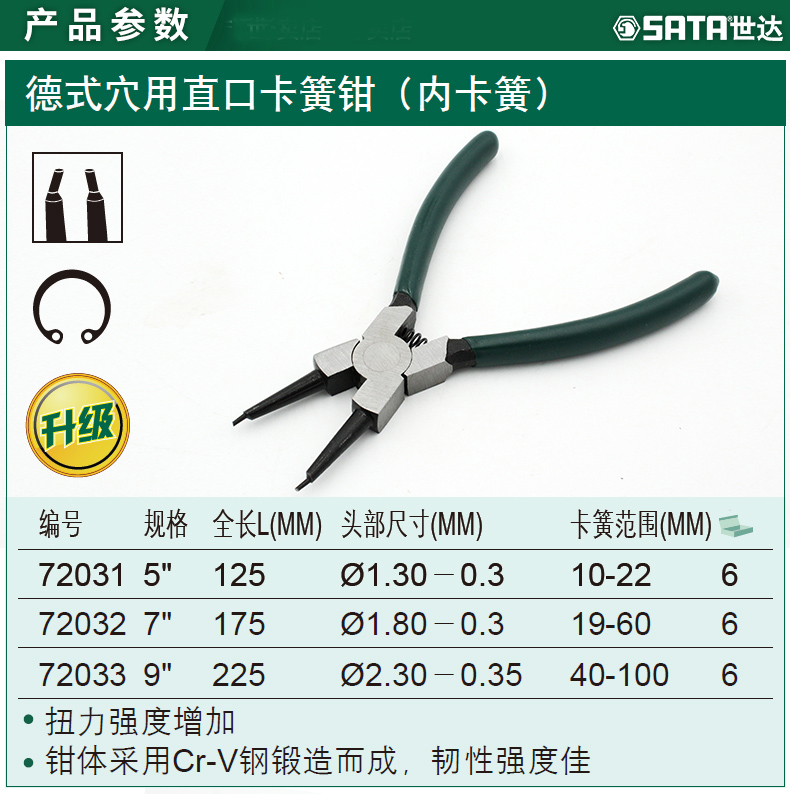 世达工具卡环钳子内卡弹簧钳子卡簧钳内卡簧挡圈钳卡黄钳72031