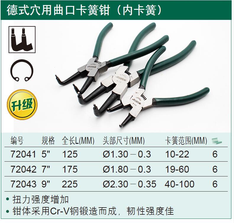 世达工具SATA 穴用曲口卡簧钳 (内卡)72041 72042 72043 72044
