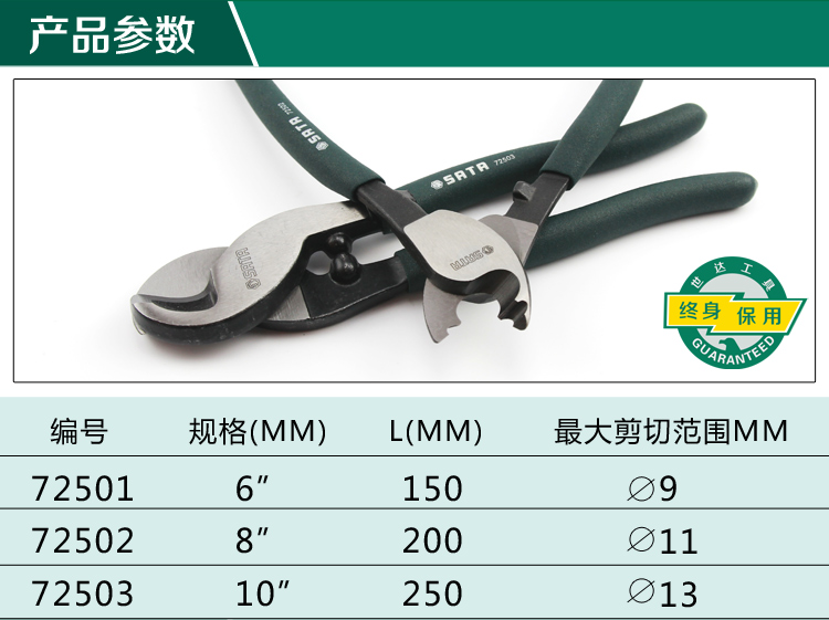 世达工具电缆切割钳6寸8寸10寸电缆剪线缆剪子 72501/72502/72503