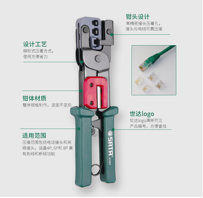 世达五金工具冷压钳压著钳网线钳电缆压线钳光纤接线端子钳91109