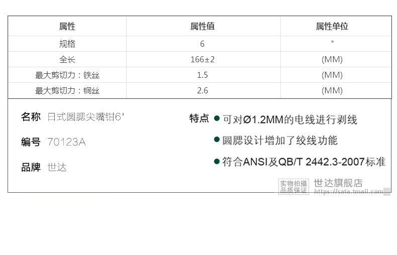 世达电工工具多功能尖咀钳长针嘴钳尖嘴钳子6寸日式尖头钳 70123A