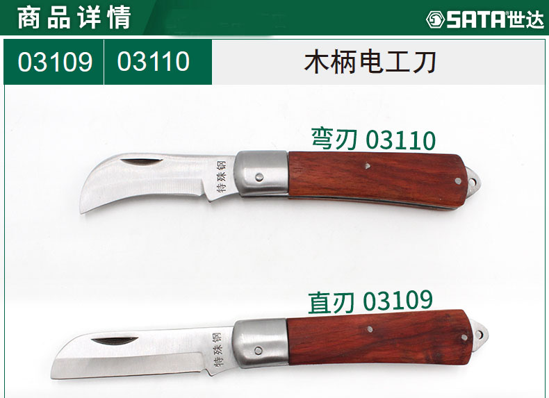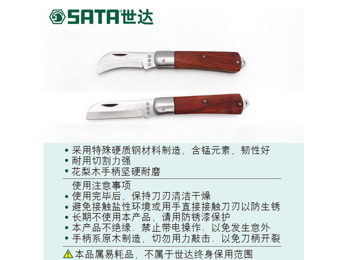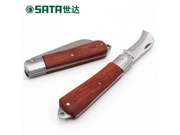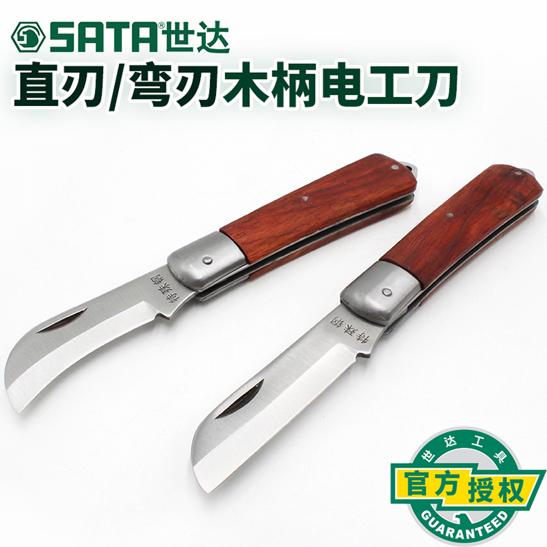 世达电工刀直刃弯刃木柄绝缘电缆剥线刀电线剥皮刀03109/03110