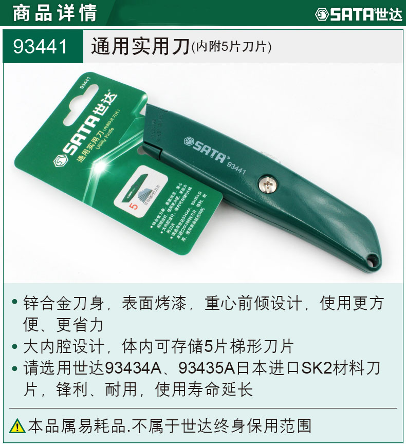 世达壁纸刀五金工具不锈钢刀重型折叠美工刀墙纸刀切割刀片93441
