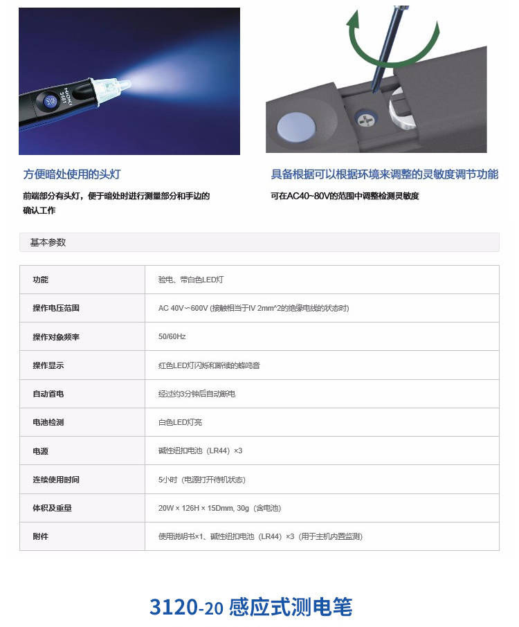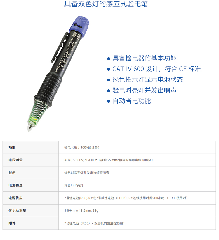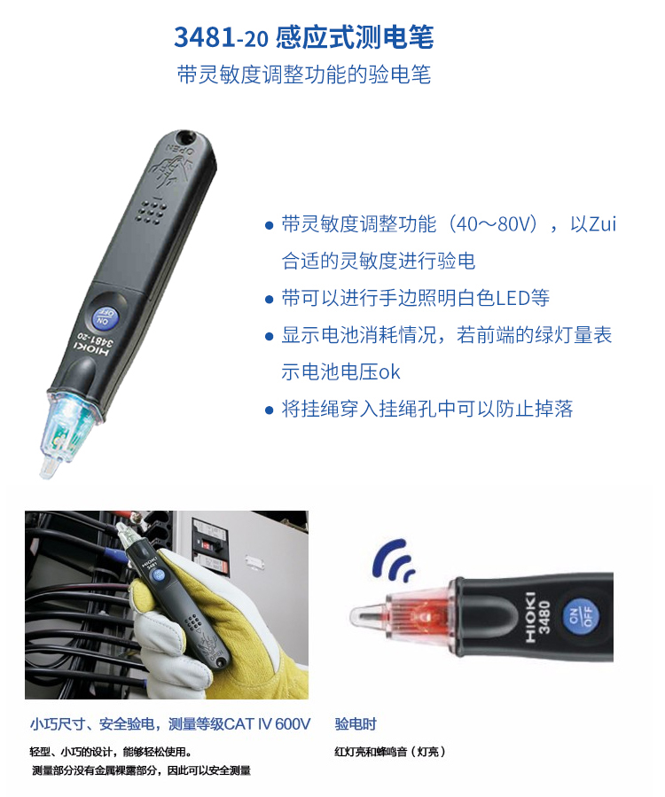 HIOKI/日置3120双色灯感应式验电笔3481-20多功能感应测电笔 3120-20