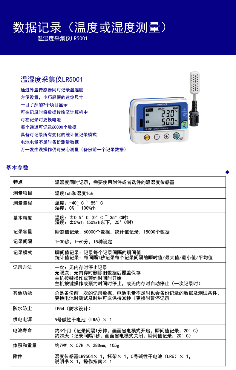 日置HIOKI 温湿度记录仪 温度记录仪 LR5001