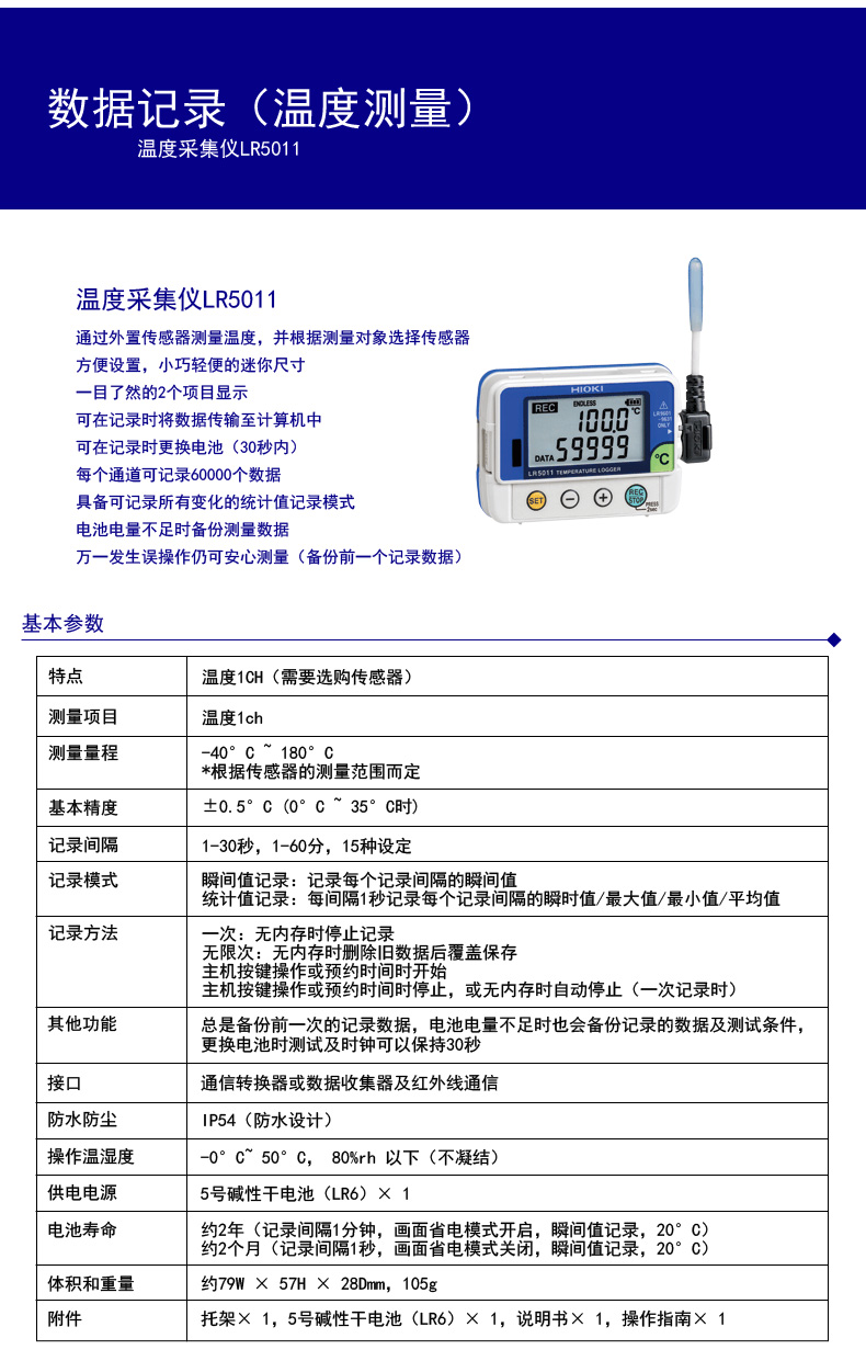 日置HIOKI 温湿度记录仪 温度记录仪 LR5011