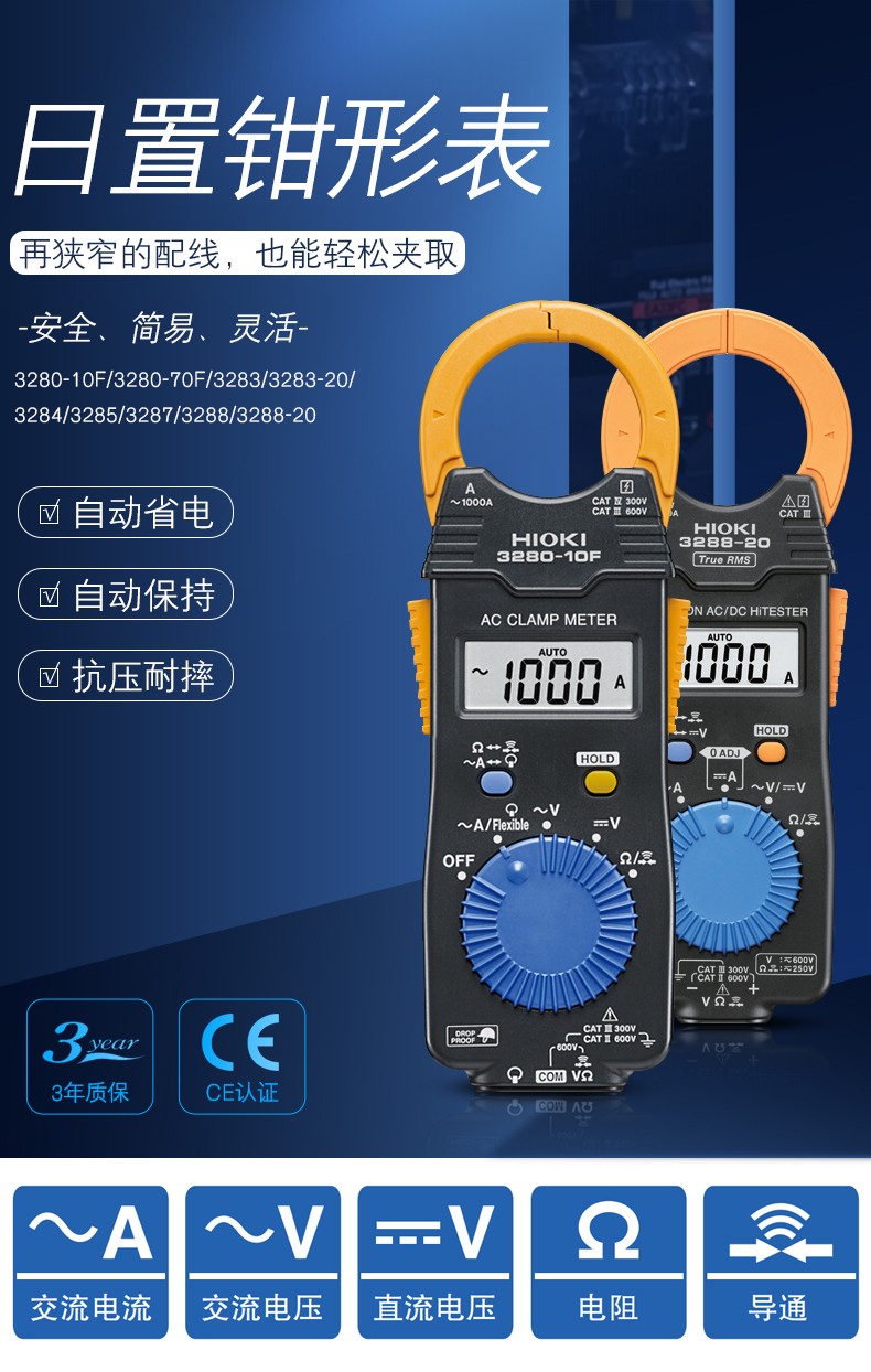 日置钳型电流表3280-10F 3280-70F CM3289钳形万用表3283 3288 3285 3283(泄漏电流钳形表)