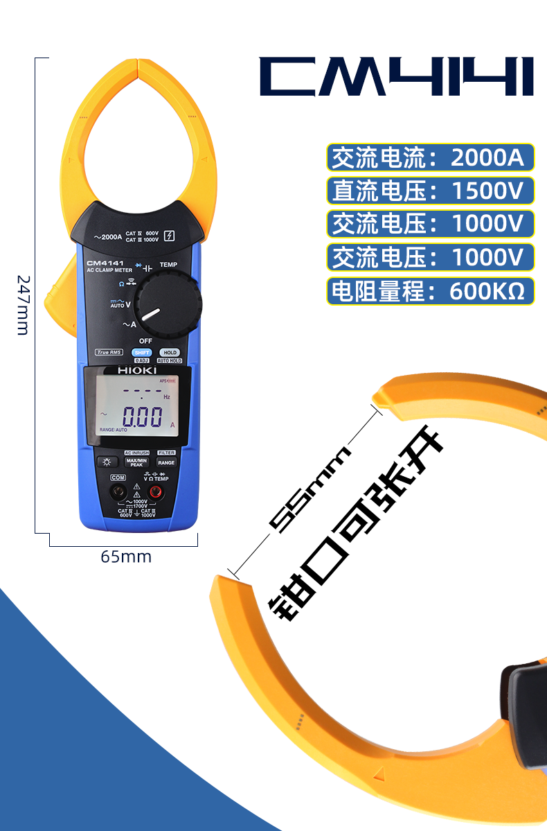 日置(HIOKI)CM4141-30 大钳口钳形表数字钳形万用表电流表 仪器仪表