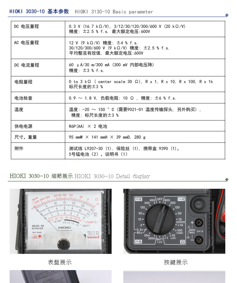 日置HIOKI 指针万用表 3030-10