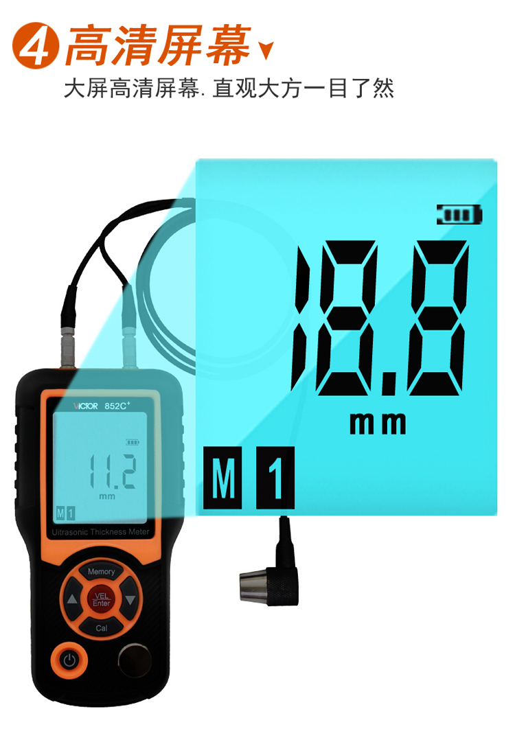 胜利仪器(VICTOR) 超声波钢板玻璃测厚仪 VC852C+