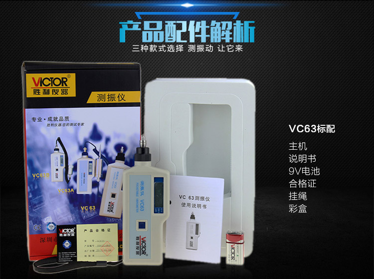 胜利仪器(VICTOR)数字测振仪 测震仪 一体式 振动测试仪 VC63